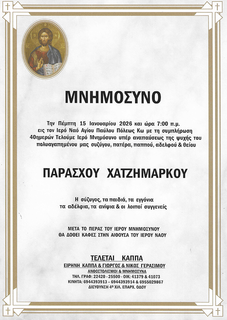 Bαθιά θλίψη στην Κάλυμνο από τον αιφνίδιο θάνατο του Μαθιού Δαγιάση