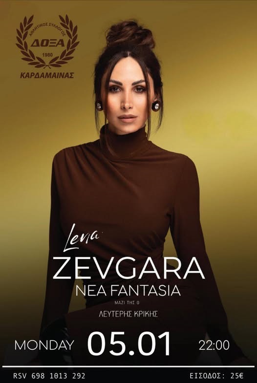 Χοροεσπερίδα διοργανώνει την Δευτέρα 5/1/26 η Δόξα Καρδάμαινας με την Λένα Ζευγαρά στη "Νέα Φαντασία".