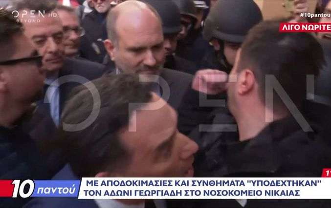 Νωρίτερα, διαδηλωτές υποδέχτηκαν με το πανό «Τέμπη-Πύλος-Παλαιστίνη» τον Άδωνι Γεωργιάδη έξω από το Αρεταίειο Νοσοκομείο. Στον διάλογο που ακολούθησε, μία εκ των συγκεντρωμένων είπε στον κ. Γεωργιάδη «είμαστε με τη Χαμάς» με τον υπουργό Υγείας να επισημαίνει σε ανάρτησή του στο Χ «φυσικά καμία σχέση με το ΕΣΥ τα αιτήματα και οι διαμαρτυρίες τους».