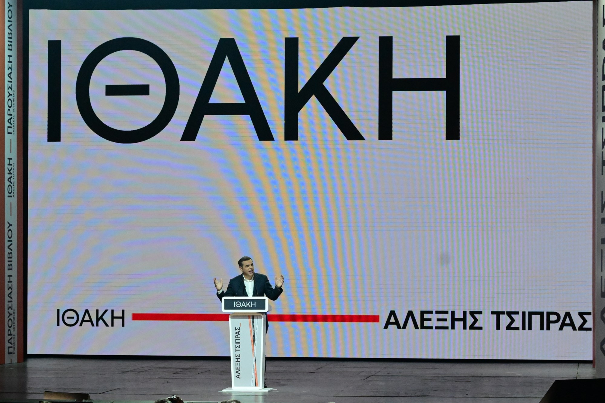 Πλήθος κόσμου έδωσε το "παρών" στην παρουσίαση του βιβλίου του Αλέξη Τσίπρα με τίτλο "Ιθάκη" στο θέατρο Παλλάς, στην οδό Βουκουρεστίου.