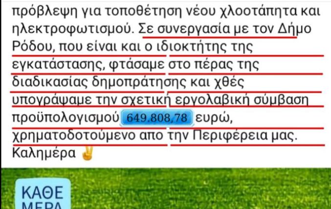 Με αυτόν τον τρόπο άλλωστε, η Περιφέρεια Νοτίου Αιγαίου χρηματοδότησε, εφέτος, έργα στα δημοτικά γήπεδα ποδοσφαίρου, όπως της Απολακκιάς, του Ασκληπιείου, της Λάρδου και του Παραδεισίου, συνολικού προϋπολογισμού 2.056.029,07€.