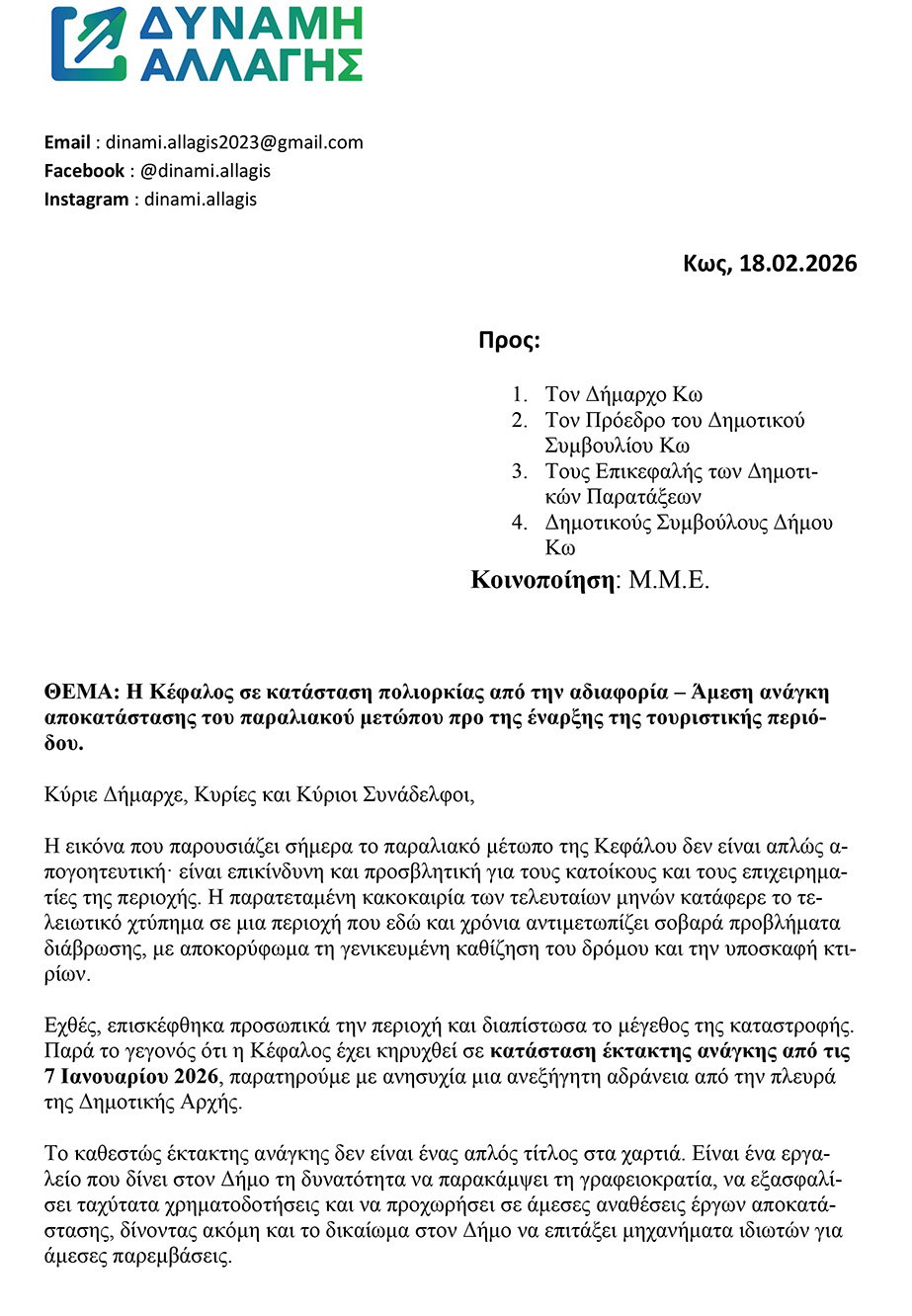 Έλα τώρα που βρήκαμε παπά να θάψουμε πολλούς λαϊκή παροιμία.πανω στην κακοκαιρία βαρατε τους πολιτικούς.ερωτηση εσείς τι κάνατε τόσα χρόνια για την Κεφαλο; απάντηση τίποτα. Ο κακός μας ο καιρός φταίει και η κακια μας να τα ρίχνουμε σε όλους εκτός από τον εαυτό μας. Άλλωστε η πολιτική προστασία μας ειδοποιεί μείνετε σε ασφαλές μέρος κακοκαιρία είναι και θα περάσει και ζημιές θα αφήσει.