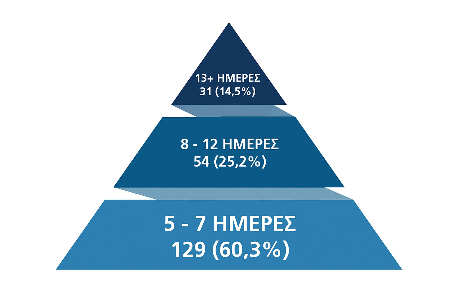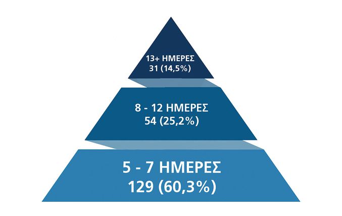 Αρκετά ικανοποιητικό ήταν το ποσοστό και για τα μεγαλύτερα πακέτα διακοπών, με το 8 έως 12 ημέρες να προτιμάτε από το 25,2% των ερωτηθέντων (54) και το πακέτο 13 ημέρες συν, από το 14,5% (31).