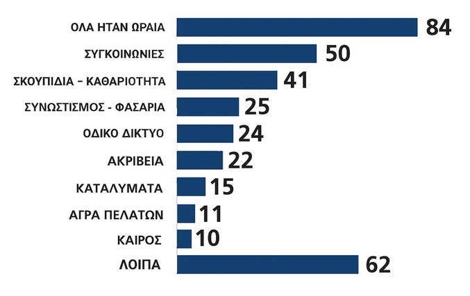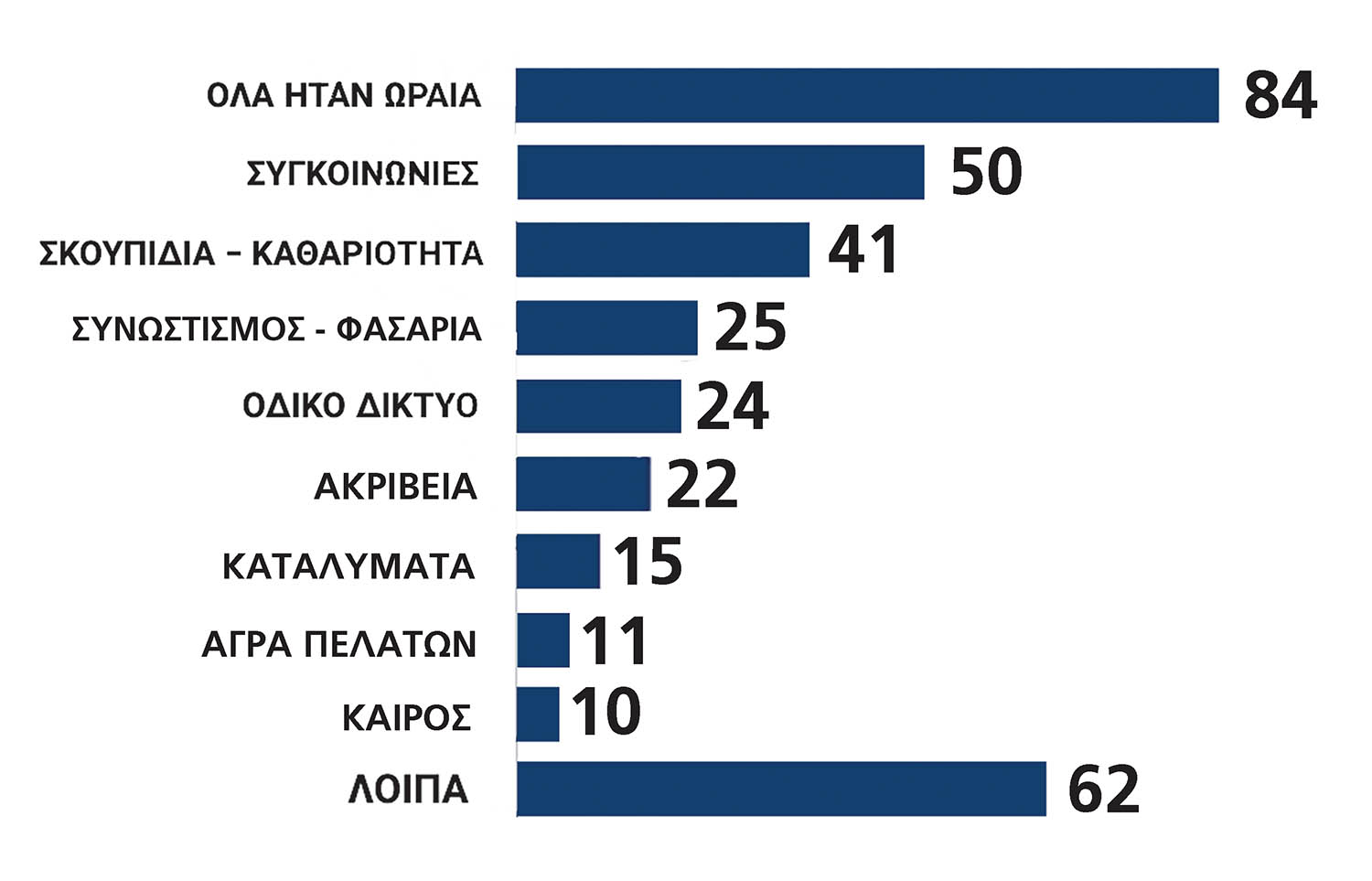 Το θετικό είναι ότι, παρά τα παράπονα, η γενική εντύπωση παραμένει θετική, αφού αρκετοί από αυτούς (84) δεν βρήκαν κάτι κακό να μας πουν (μάλλον παρά ήταν ευγενικοί).