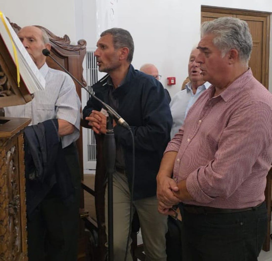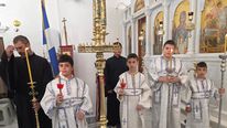 Έψαλλε χορός Ιεροψαλτών υπό τον καθηγητή Πρωτοψάλτη Γιώργο Σακέλλη: Νίκος Ματσούκας (Πρωτοψάλτης του ιερού ναού), Δημήτρης Τανάγρας, Ηλίας Καματερός, Μιχάλης Ανδρέου, Βασίλης Παπαδόπουλος, Γιώργος Σανιδάς, Μιχάλης Καρακιόζης, Γιάννης Κιάρης.