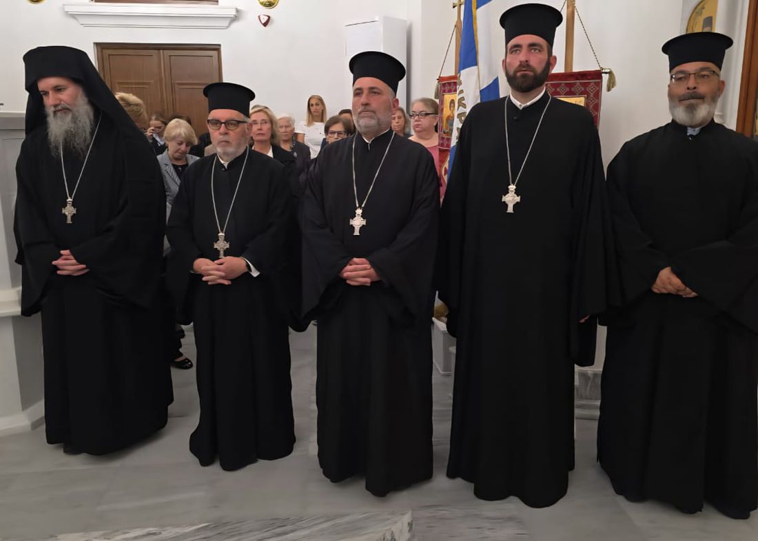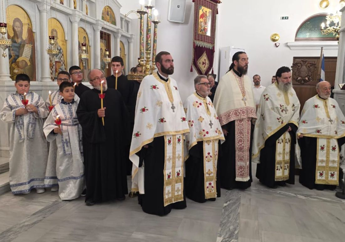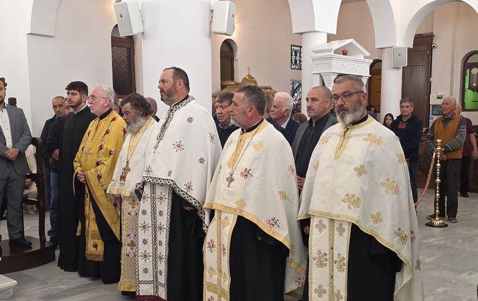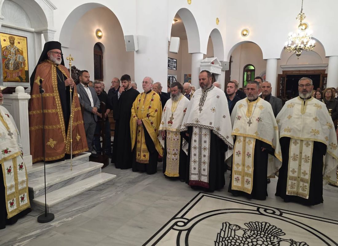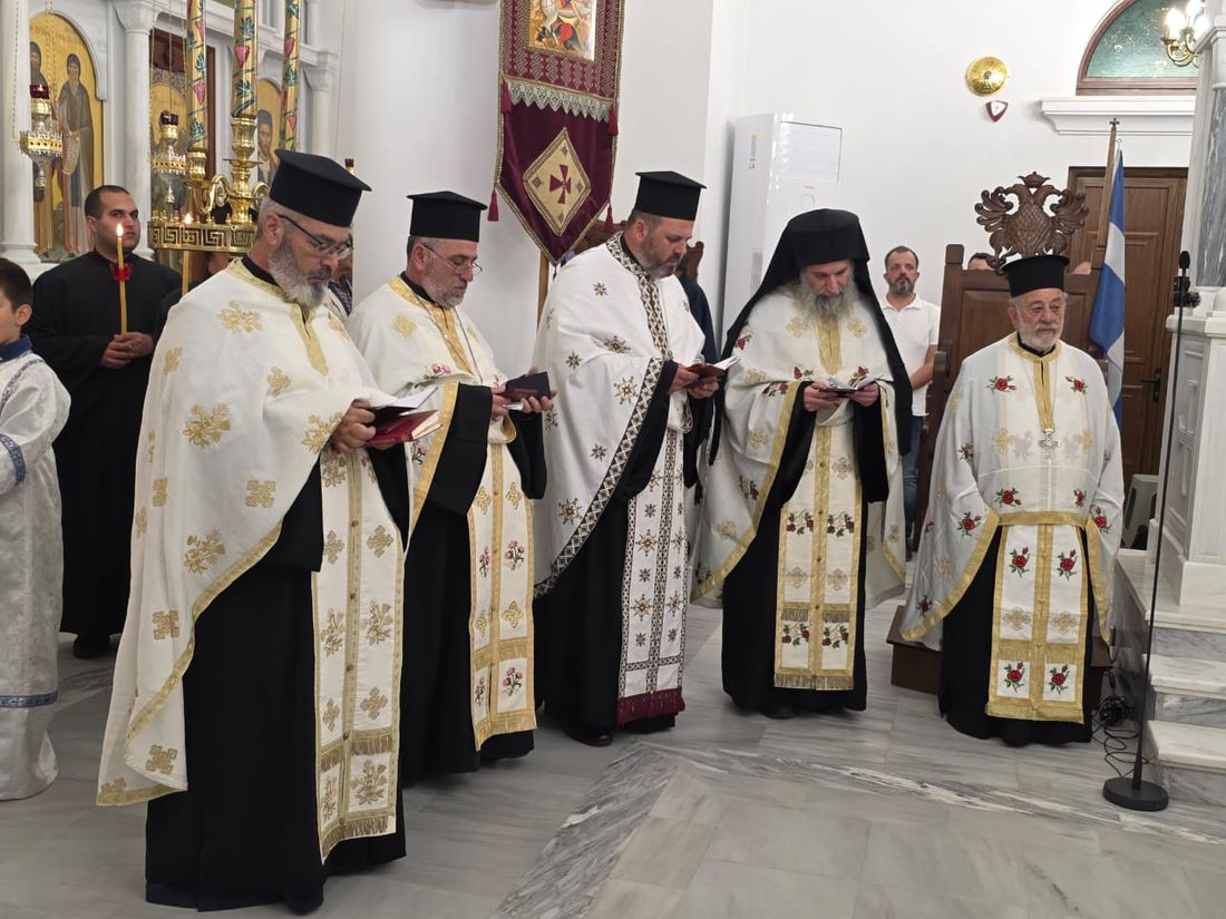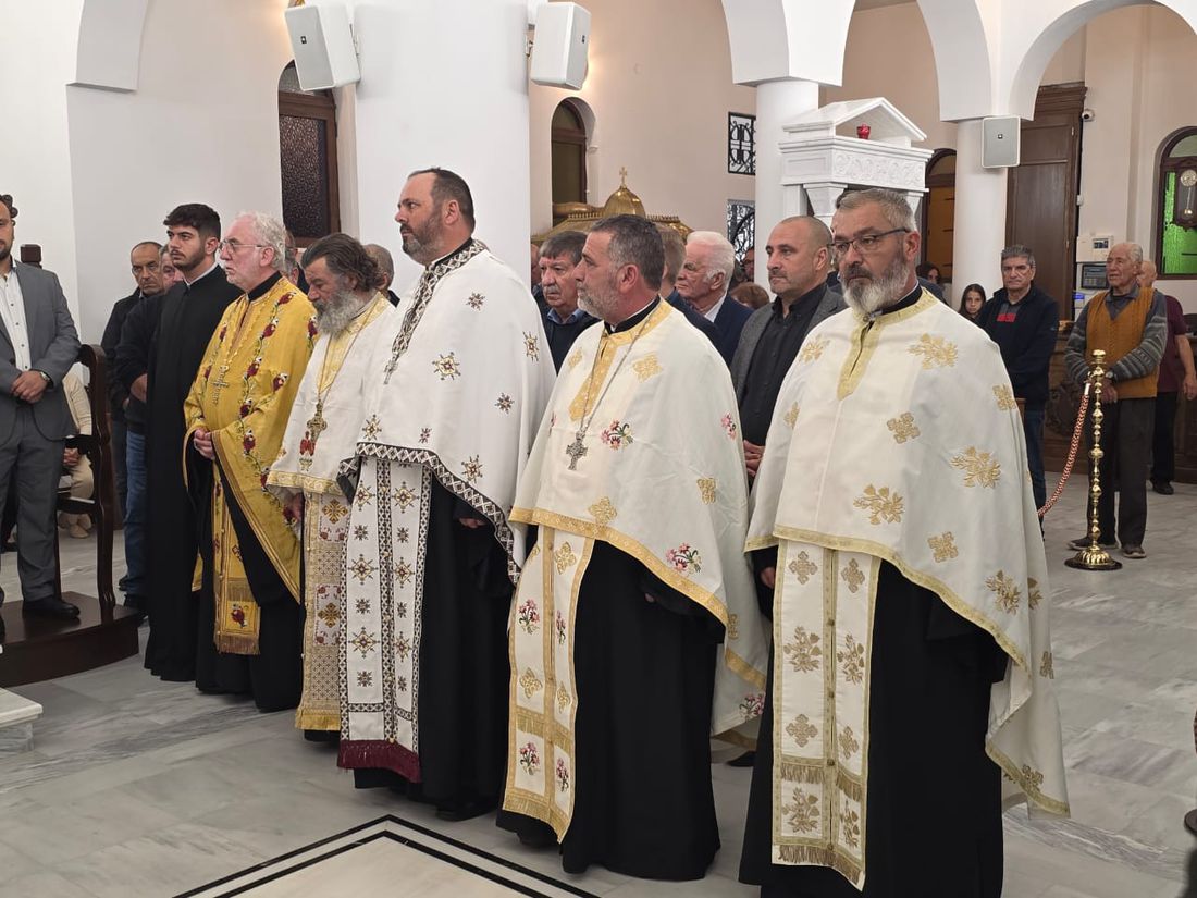Τον Σεβασμιώτατο πλαισίωναν ο Γενικός Αρχιερατικός Πρωτοπρεβύτερος π. Ιωάννης Διακοπαναγιώτης, ο Αρχιμανδρίτης και Ιεροκήρυκας της ΙΜ π. Ιωακείμ Οικονομίκος, ο Αρχιμανδρίτης π Νεκτάριος Χάσικος και οι Ιερείς: π. Ιωάννης Σεβαστάκης, π. Αναστάσιος Γιώτης, π. Περικλής Κιάρης, π. Κωνσταντίνος Καματερός, π. Βαγιανός-Ιωάννης Κώστογλου. π. Κωνσταντίνος Θέος και ο Ιερατικώς Προϊστάμενος και εφημέριος του ιερού ναού π. Αναστάσιος Τσουκνιάς.