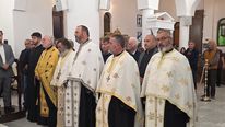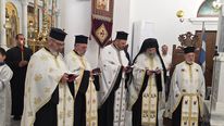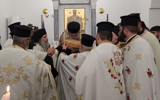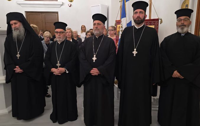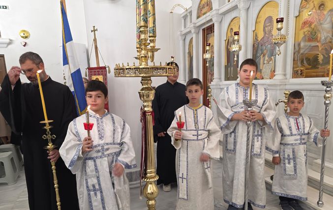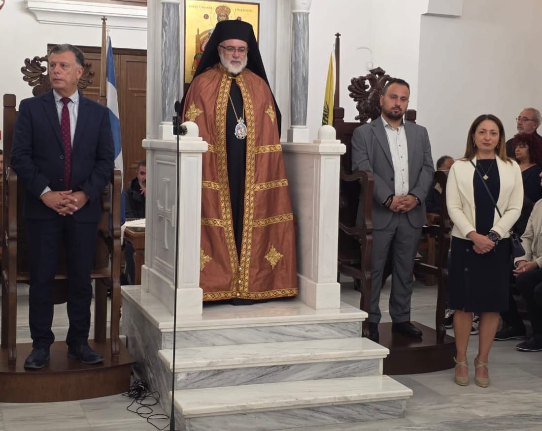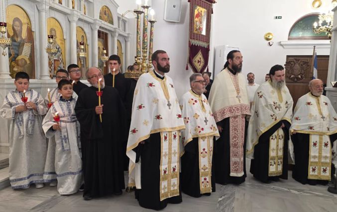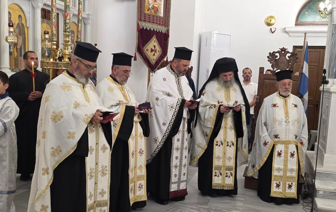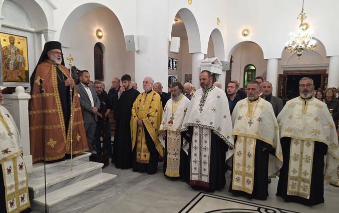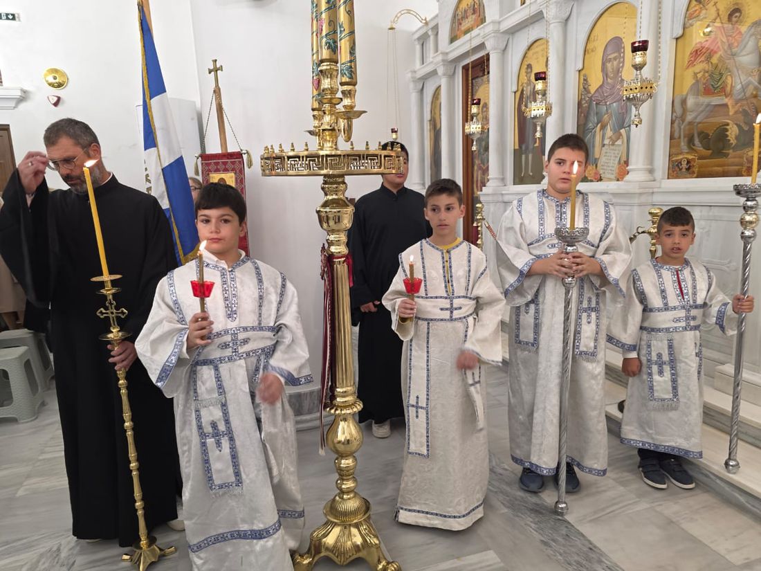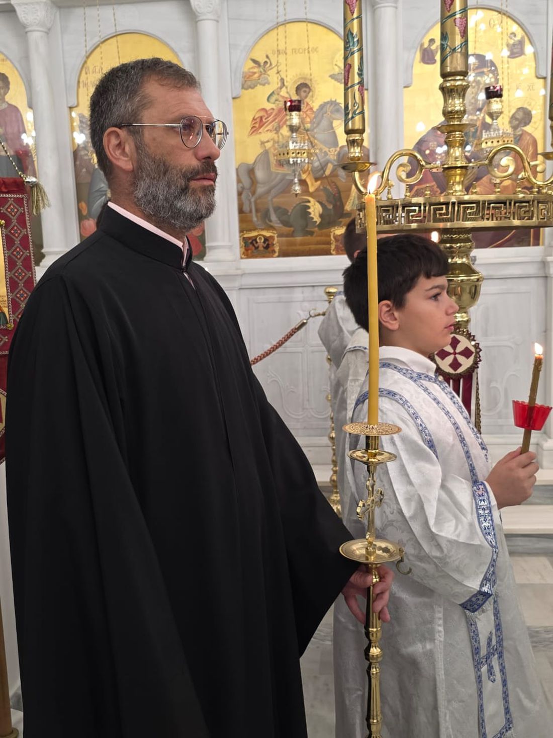 Τον Σεβασμιώτατο πλαισίωναν ο Γενικός Αρχιερατικός Πρωτοπρεβύτερος π. Ιωάννης Διακοπαναγιώτης, ο Αρχιμανδρίτης και Ιεροκήρυκας της ΙΜ π. Ιωακείμ Οικονομίκος, ο Αρχιμανδρίτης π Νεκτάριος Χάσικος και οι Ιερείς: π. Ιωάννης Σεβαστάκης, π. Αναστάσιος Γιώτης, π. Περικλής Κιάρης, π. Κωνσταντίνος Καματερός, π. Βαγιανός-Ιωάννης Κώστογλου. π. Κωνσταντίνος Θέος και ο Ιερατικώς Προϊστάμενος και εφημέριος του ιερού ναού π. Αναστάσιος Τσουκνιάς.