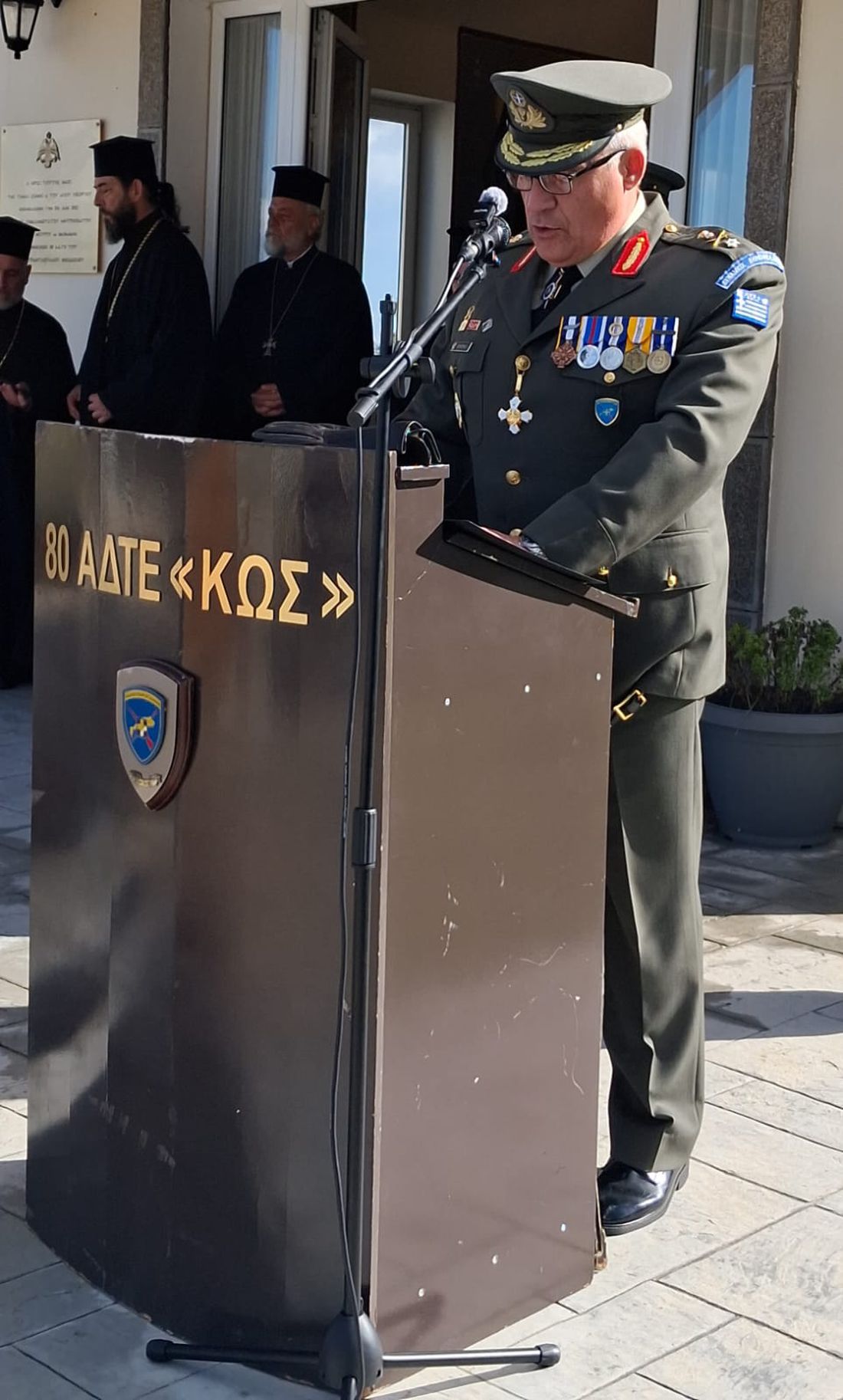 Από την πλευρά του, ο νέος διοικητής, Ταξίαρχος Γρηγόρης Γαρουφαλιάς, εξέφρασε την τιμή και την ευθύνη που αισθάνεται αναλαμβάνοντας τη διοίκηση της 80 ΑΔΤΕ και δεσμεύτηκε να συνεχίσει με συνέπεια και αποφασιστικότητα την υλοποίηση των επιχειρησιακών και εκπαιδευτικών στόχων της Ταξιαρχίας, με γνώμονα την επιχειρησιακή ετοιμότητα και την προσφορά στην πατρίδα.