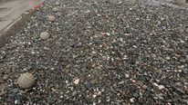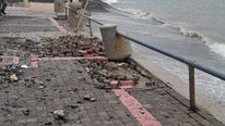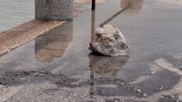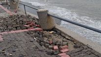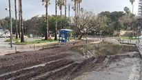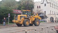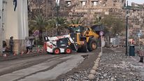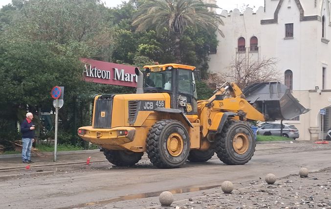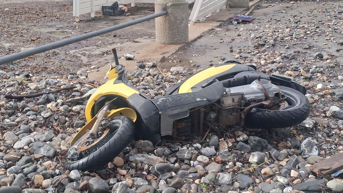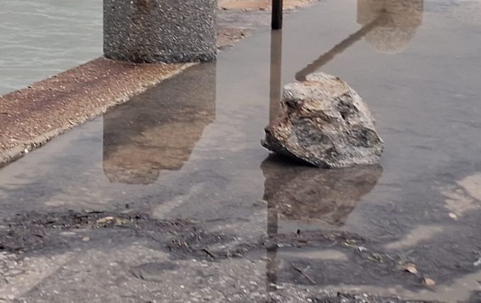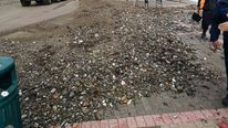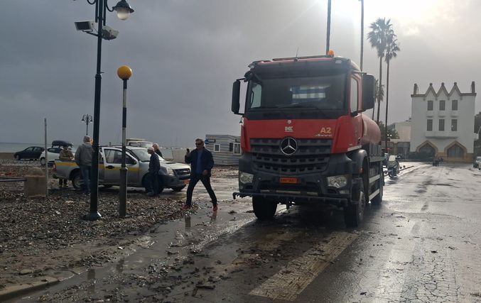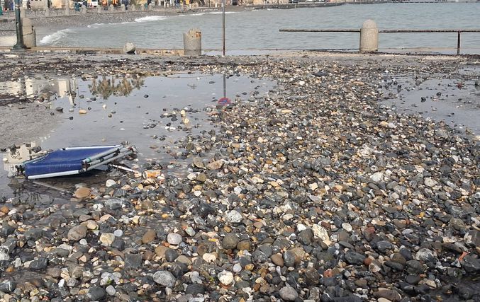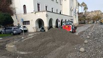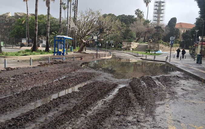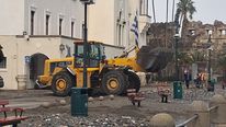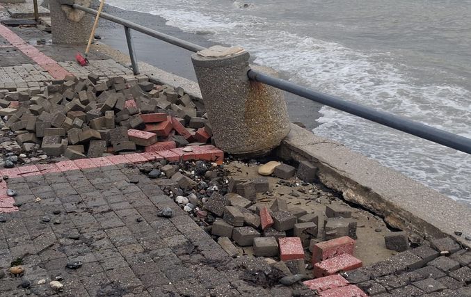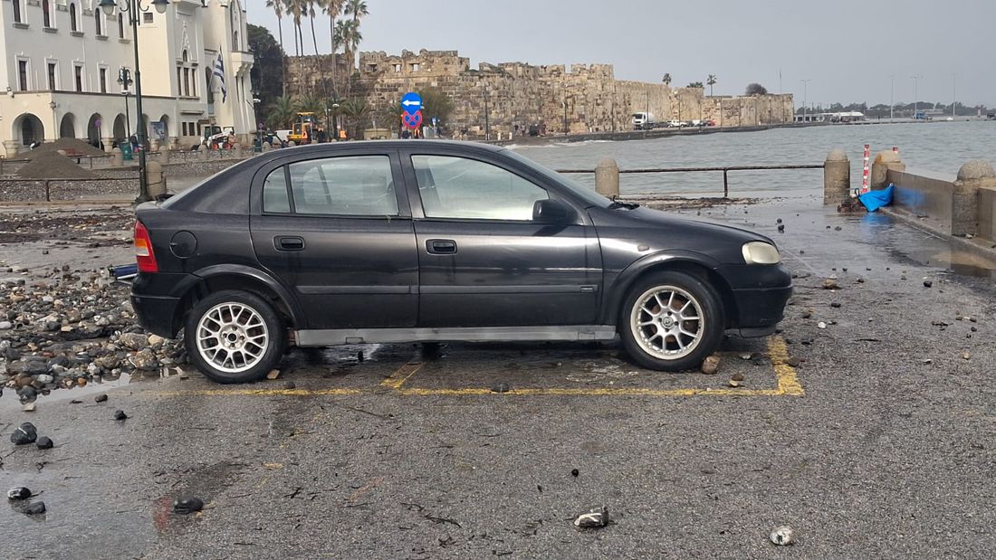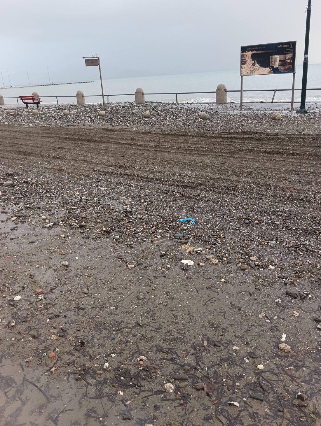 Οι θυελλώδεις άνεμοι μετέφεραν στη στεριά φερτά υλικά, με τα συνεργία να προσπαθούν να τα απομακρύνουν για να επιτραπεί και πάλι η διέλευση πεζών και οχημάτων στην περιοχή.