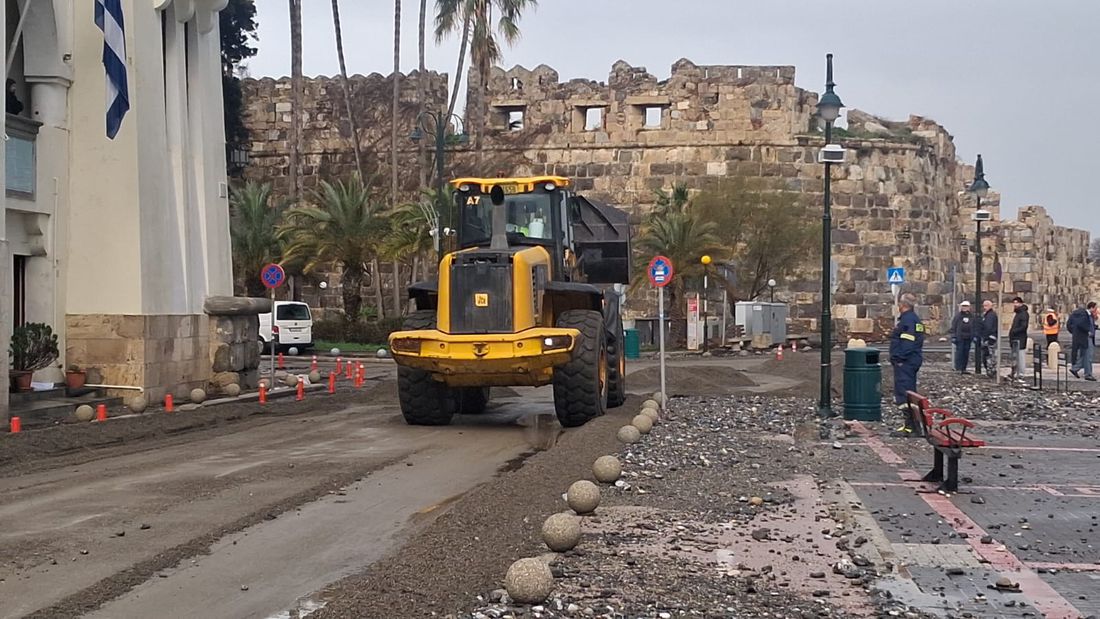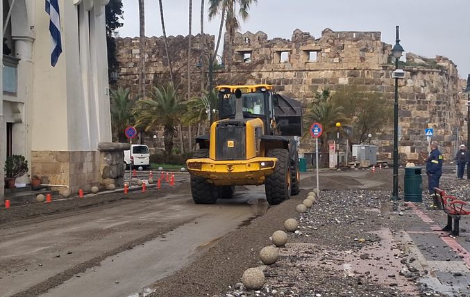 Συνεργεία του Δήμου Κω, βρίσκονται επί ποδός από νωρίς το πρωί, για να αποκαταστήσουν τις ζημιές που προκλήθηκαν στο λιμάνι της Κω από την κακοκαιρία.