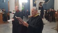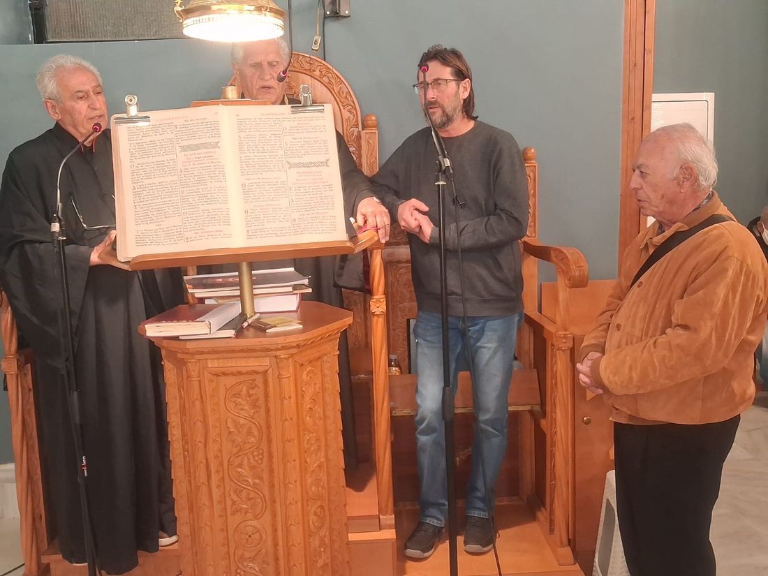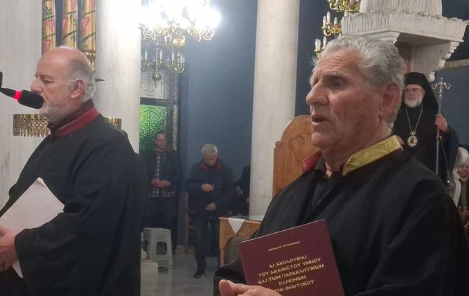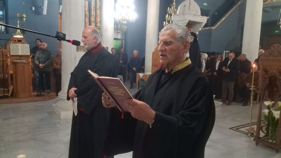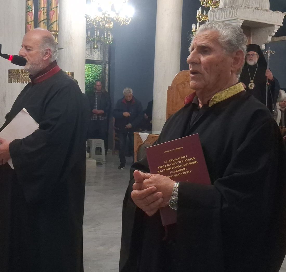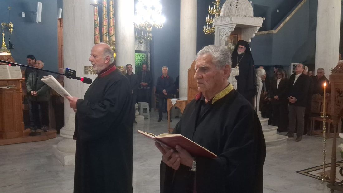 Τους ύμνους απέδωσαν κατανυκτικά και μεγαλόπρεπα ο καθηγητής- Πρωτοψάλτης και Πρόεδρος του Συλλόγου Ιεροψαλτών Κω Γιώργος Σακέλλης με τους Ιεροψάλτες Νίκο Παπαθωμά, Παύλο Παλάσκα και Δαυίδ Σακέλλη στον δεξιό χορό και στον αριστερό χορό ο Κωνσταντίνος Χατζηάμαλλος και ο Πάρης Λαδικός.