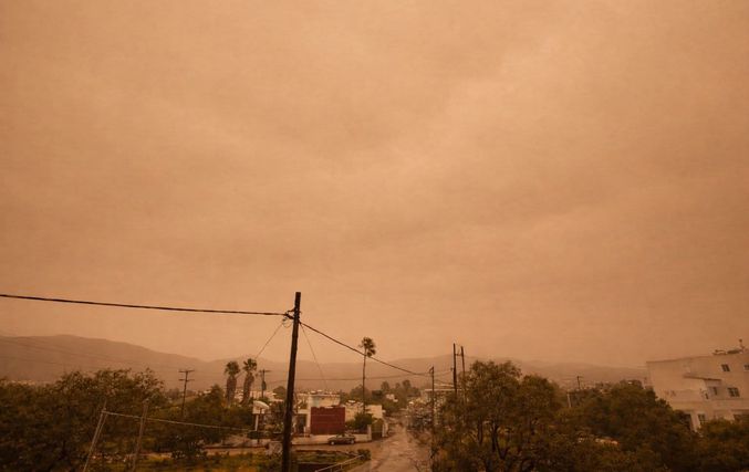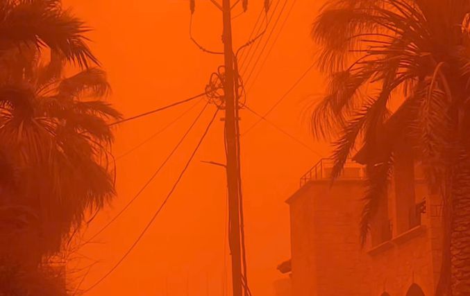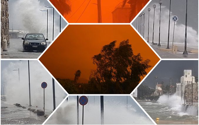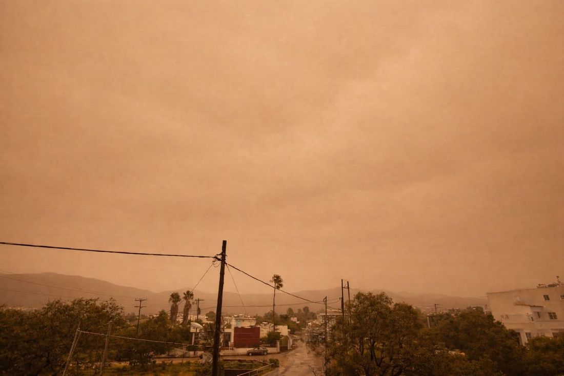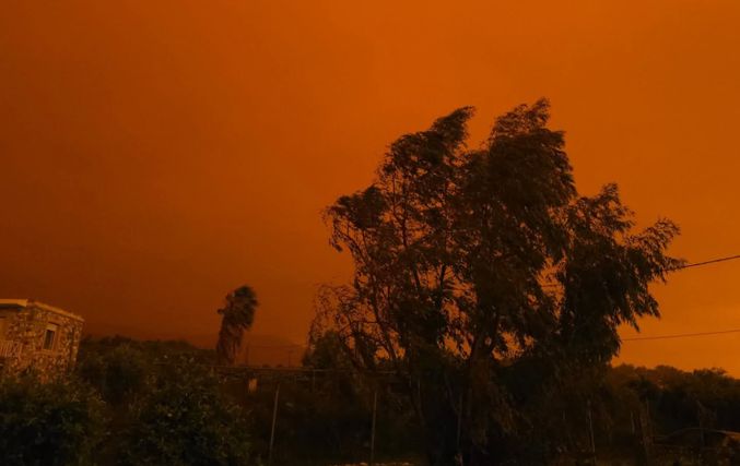 Η κακοκαιρία «Erminio» δείχνει τα δόντια της στην Κω, μετατρέποντας το νησί σε ένα εντυπωσιακό αλλά και ανησυχητικό σκηνικό, με τον ουρανό και την ατμόσφαιρα να  έχουν αποκτήσει μια έντονη πορτοκαλί απόχρωση, αποτέλεσμα της αφρικανικής σκόνης που έχει καλύψει ολόκληρη την περιοχή, δημιουργώντας εικόνες που θυμίζουν περισσότερο τοπίο της Σαχάρας παρά νησί του Αιγαίου.