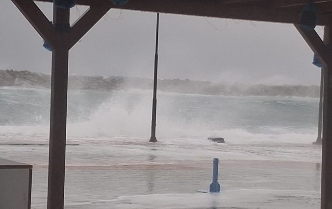 Λόγω των ακραίων καιρικών συνθηκών, σε ισχύ βρίσκεται απαγορευτικό απόπλου για τα πλοία, με αποτέλεσμα να έχουν διακοπεί προσωρινά τα ακτοπλοϊκά δρομολόγια από και προς το νησί.