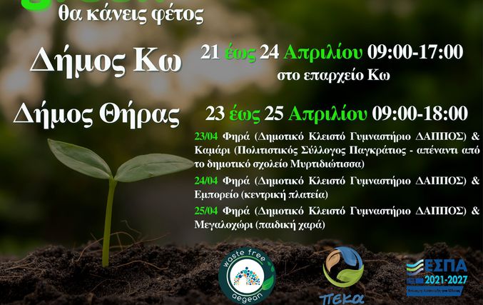 Δήμος Θήρας –από 23 έως 25 Απριλίου, ώρες 09:00 – 18:00ως εξής: