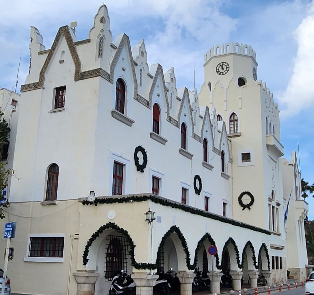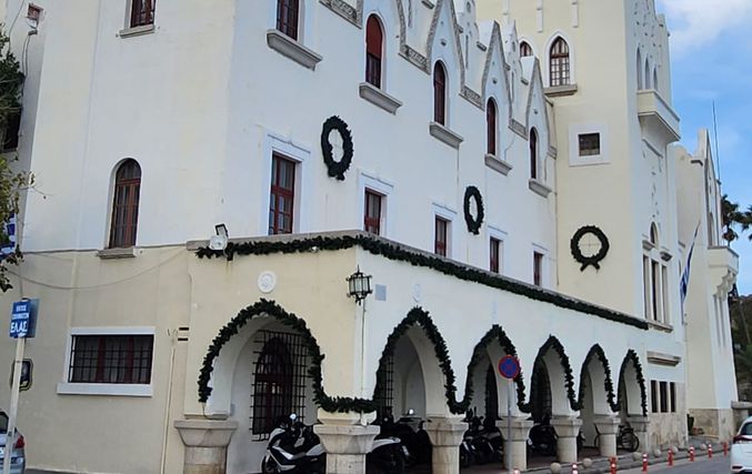 Αξίζει να σημειωθεί ότι και το κτίριο του Επαρχείου Κω έχει ήδη “φορέσει” τα γιορτινά του, συμβάλλοντας στη συνολική εορταστική ατμόσφαιρα