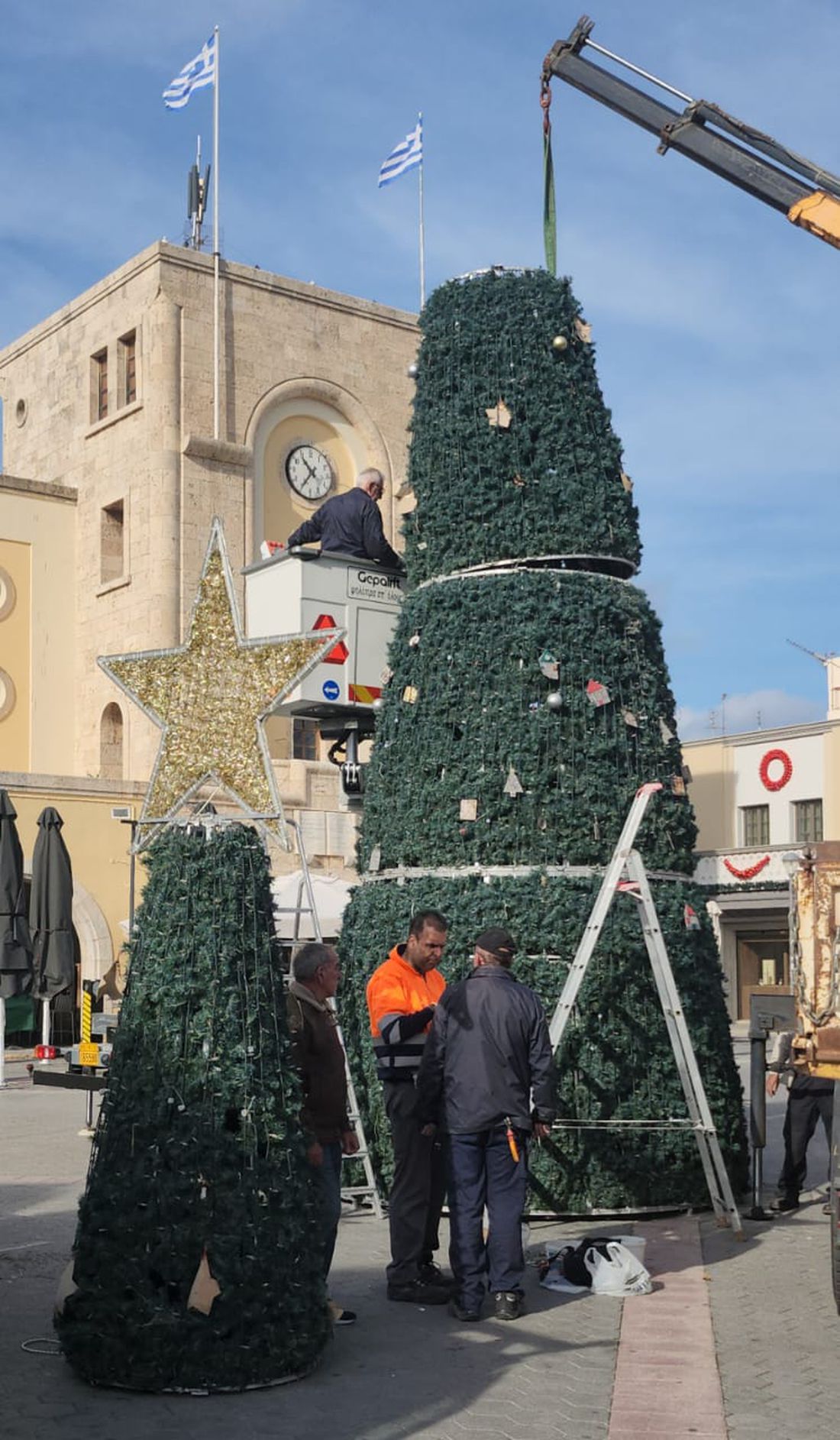Συνεχίζονται οι εργασίες για την τοποθέτηση του χριστουγεννιάτικου στολισμού στην πόλη της Κω