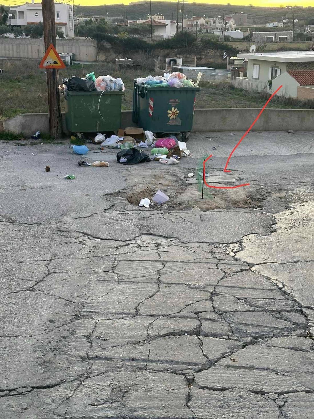 Την ίδια στιγμή, υπάρχουν γειτονιές που ζουν μέσα στα σκουπίδια επειδή το απορριμματοφόρο δεν μπορεί να προσεγγίσει τους κάδους λόγω της γνωστής λακούβας που δεν λέει να κλείσει.