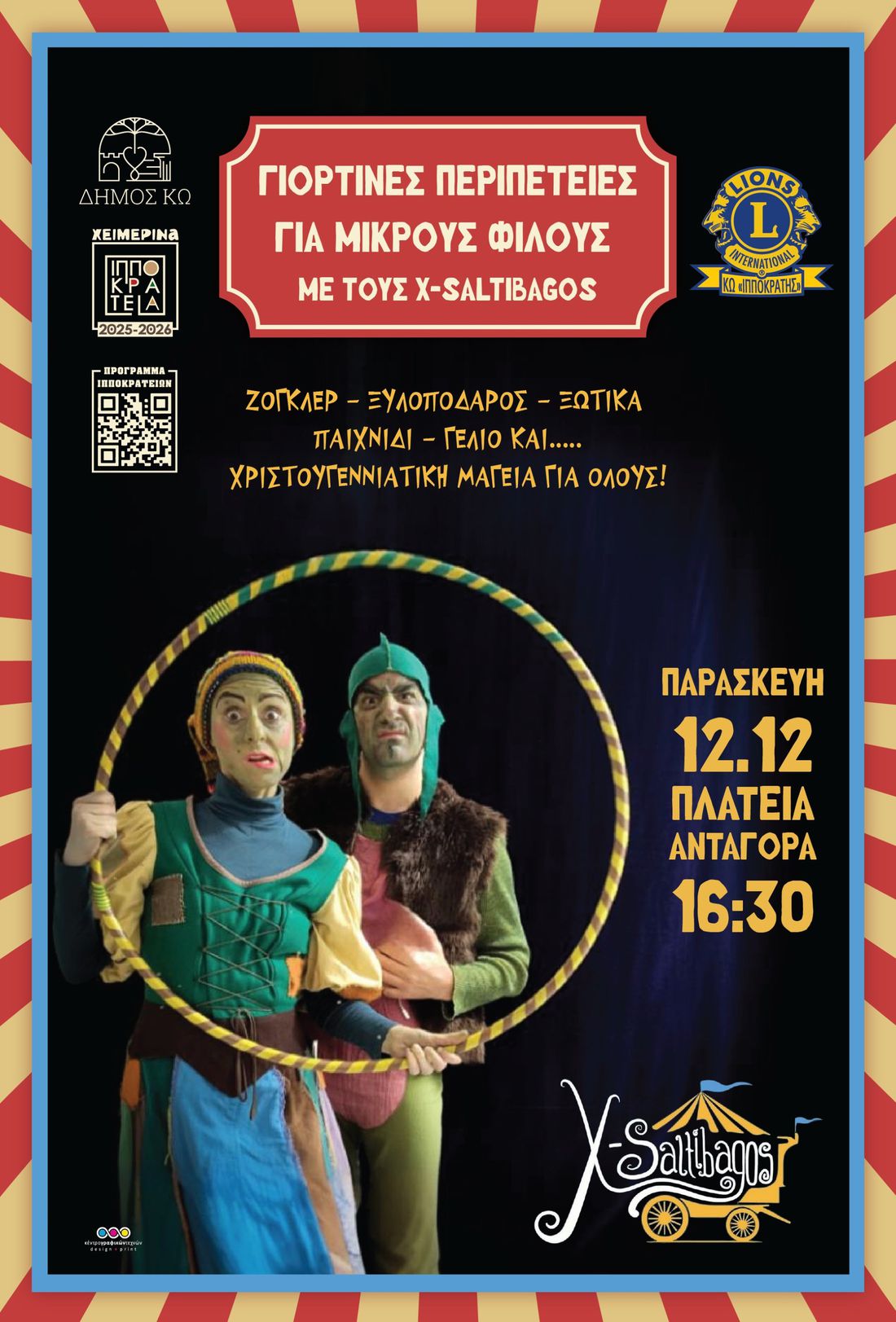 ΠΑΡΑΣΚΕΥΗ 12/12/25 - «Γιορτινές περιπέτειες για μικρούς φίλους»: ΔΙΑΔΡΑΣΤΙΚΗ ΧΡΙΣΤΟΥΓΕΝΝΙΑΤΙΚΗ ΕΚΔΗΛΩΣΗ ΓΙΑ ΠΑΙΔΙΑ σε συνδιοργάνωση του Τμήματος Πολιτισμού Δήμου Κω και της Λέσχης Lions Κω «Ο Ιπποκράτης».