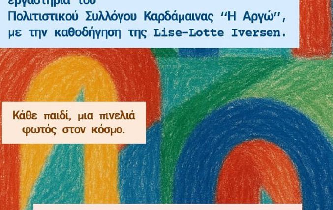 ΔΕΥΤΕΡΑ 27/10/25: «ΟΤΑΝ ΤΑ ΠΑΙΔΙΑ ΜΙΛΟΥΝ ΜΕ ΧΡΩΜΑΤΑ», σε συνεργασία με τον ΠΟΛΙΤΙΣΤΙΚΟ ΣΥΛΛΟΓΟ ΚΑΡΔΑΜΑΙΝΑΣ «ΑΡΓΩ»