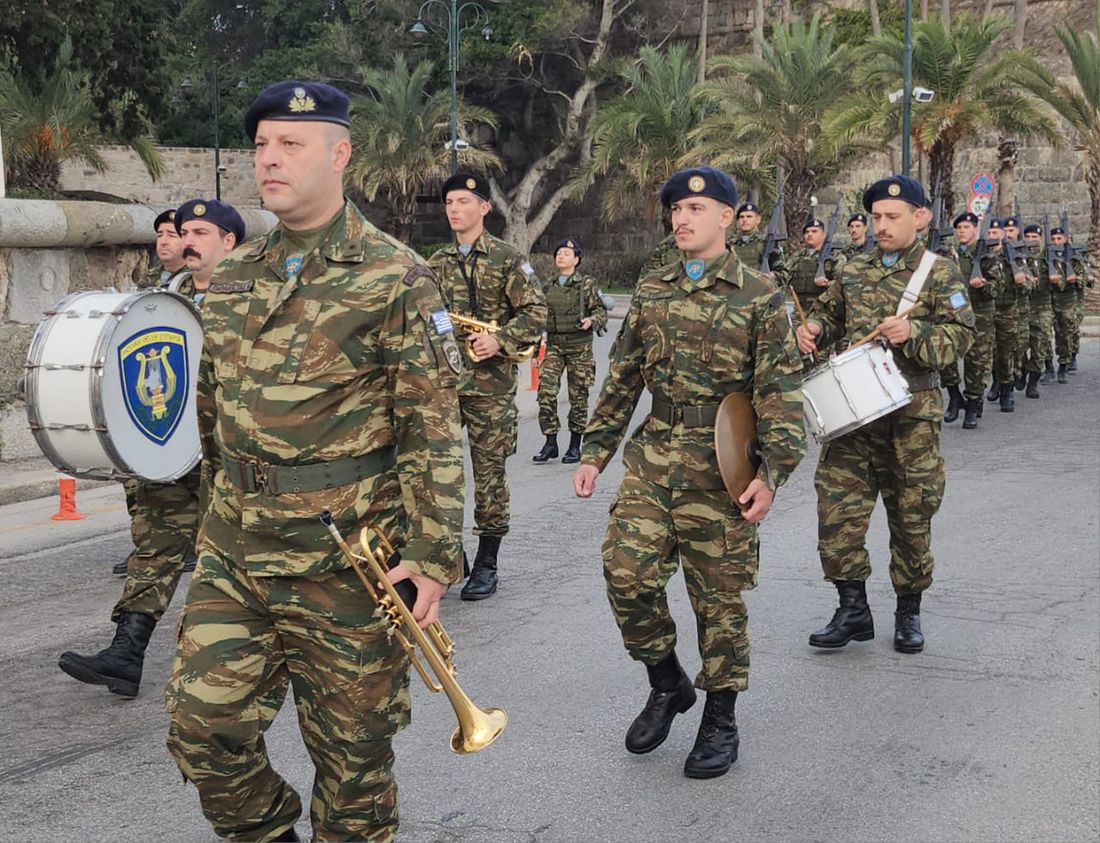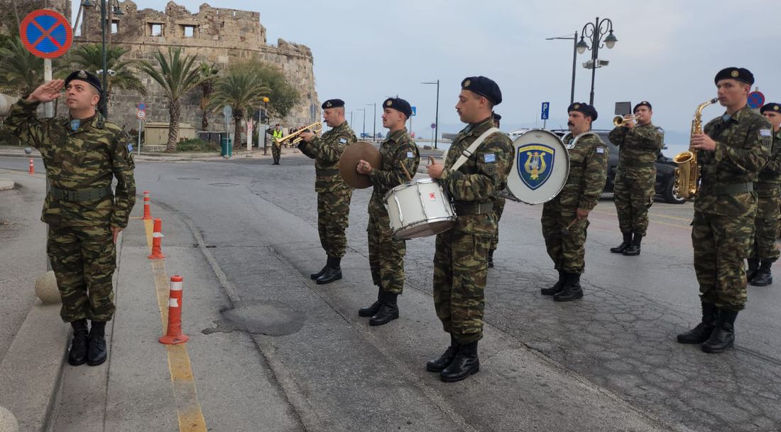 Συνοδεία της Φιλαρμονικής της 80 ΑΔΤΕ, έγινε σήμερα το πρωί, η καθιερωμένη έπαρση της Σημαίας, στο Διοικητήριο Κω.