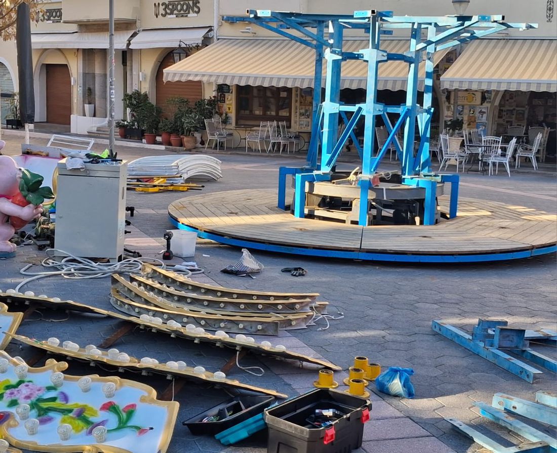 Σε εξέλιξη βρίσκονται οι εργασίες για την τοποθέτηση του Καρουζέλ στην Πλατεία Καζούλη.