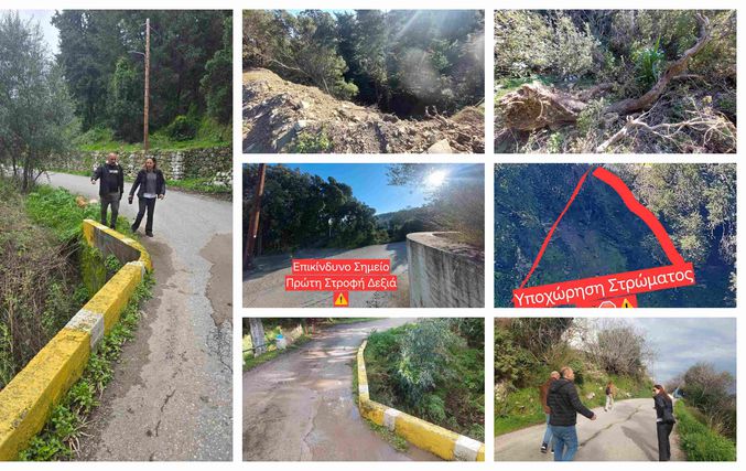 Μελέτη για την αποκατάσταση του σημείου από την καθίζηση και προστασία πρανών από κατολισθητικά φαινόμενα οπου χρειάζεται σε όλο το δρόμο!!!