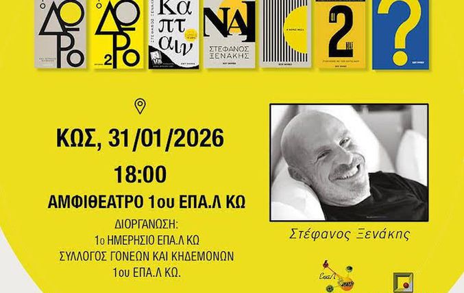 Το 1ο Ημερήσιο ΕΠΑ.Λ Κω, ο Σύλλογος Γονέων και Κηδεμόνων του 1ου ΕΠΑ.Λ Κω, το Πολύκεντρο Ν. Θαλασσινού και η Key Books προσκαλούν το κοινό στην παρουσίαση του Στέφανου Ξενάκη: