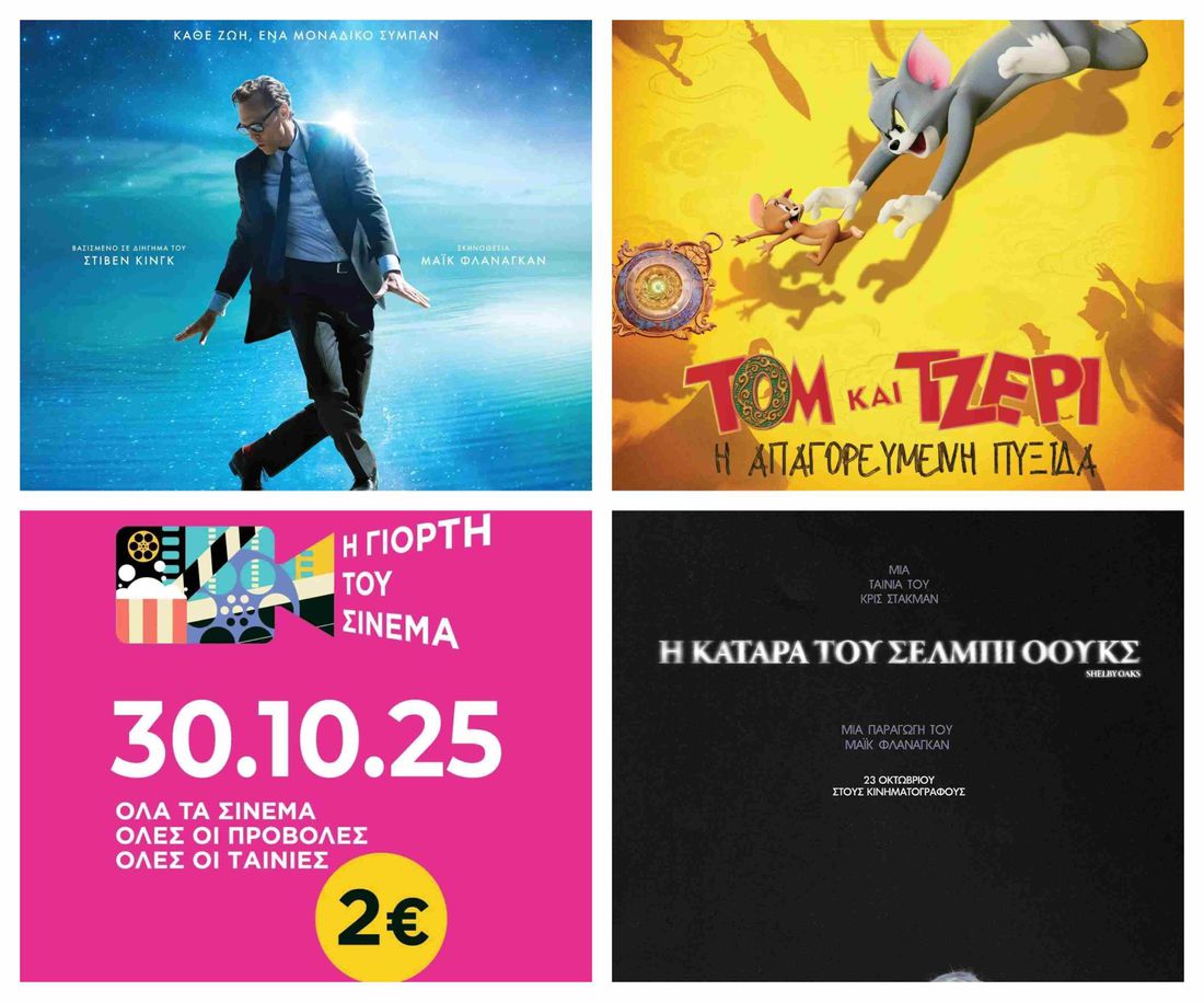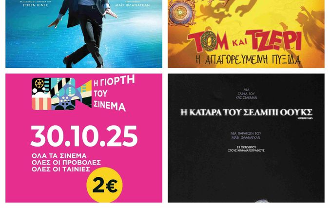 Την Πέμπτη 30 Οκτωβρίου όλη η Ελλάδα γίνεται μια τεράστια κινηματογραφική αίθουσα: σε όλα τα σινεμά της χώρας, όλες οι ταινίες και όλες οι προβολές με ενιαίο εισιτήριο 2€. Η Γιορτή του Σινεμά, μία ιδέα που έγινε θεσμός, έρχεται για τέταρτη συνεχόμενη χρονιά, δίνοντάς μας την ευκαιρία να απολαύσουμε τη μαγεία της μεγάλης οθόνης με μειωμένη τιμή. Επιλέγουμε την ταινία που θέλουμε, την παρέα που προτιμάμε, παίρνουμε τα ποπ κορν μας και δίνουμε ραντεβού στη μεγαλύτερη κινηματογραφική γιορτή της χρονιάς.