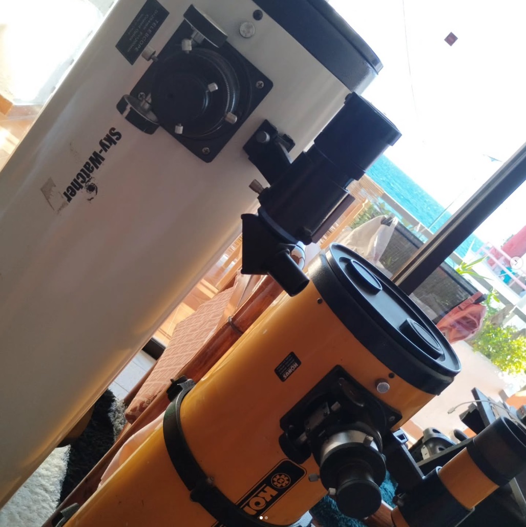 Η εικόνα δείχνει δύο τηλεσκόπια έτοιμα για παρατήρηση στο νησί της Κω.