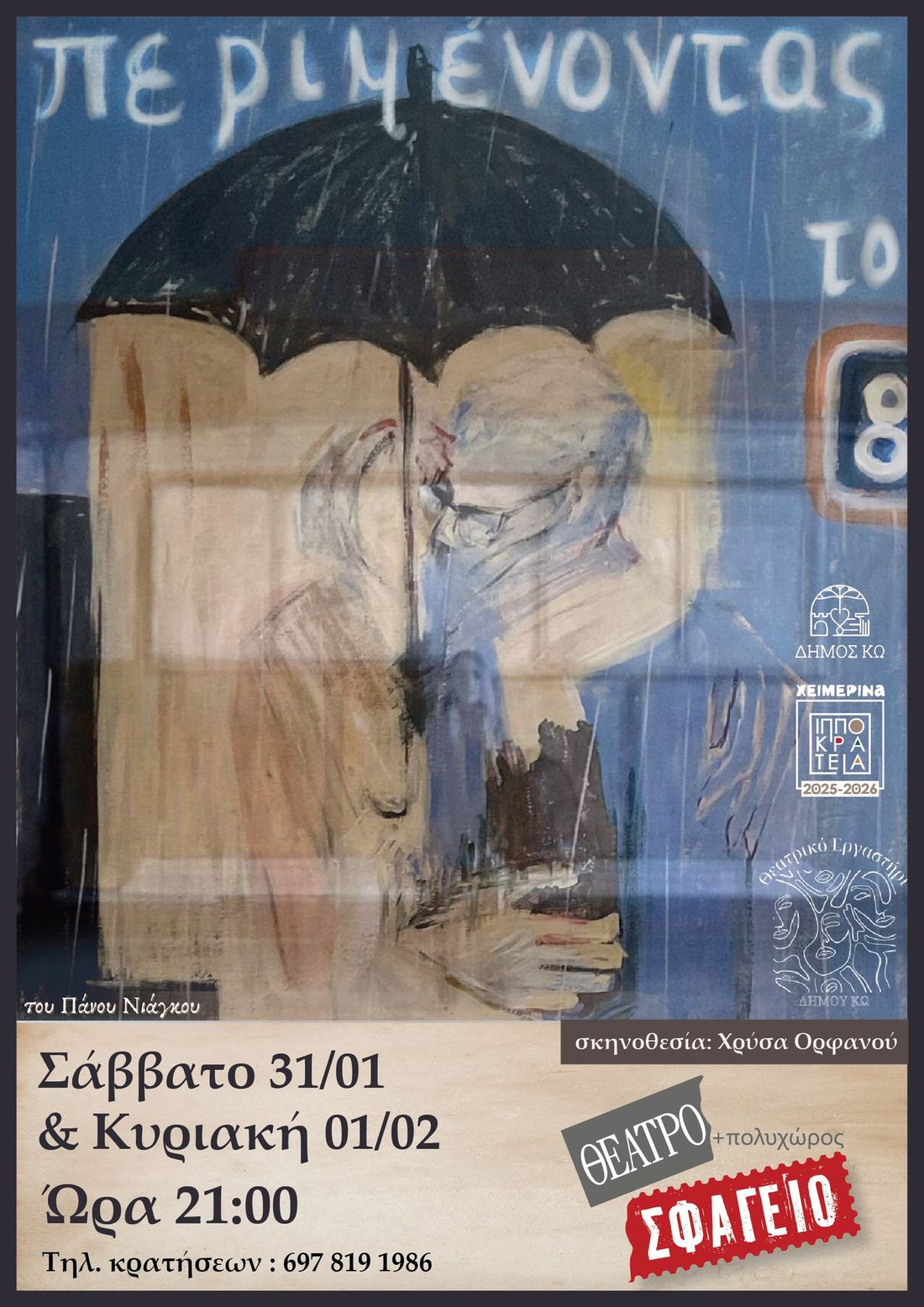 ΘΕΑΤΡΙΚΗ ΠΑΡΑΣΤΑΣΗ «ΠΕΡΙΜΕΝΟΝΤΑΣ ΤΟ 8» του ΠΑΝΟΥ ΝΙΑΓΚΟΥ από το ΘΕΑΤΡΙΚΟ ΕΡΓΑΣΤΗΡΙ ΔΗΜΟΥ ΚΩ