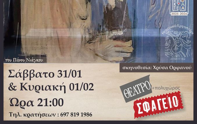 ΘΕΑΤΡΟ-ΠΟΛΥΧΩΡΟΣ «ΣΦΑΓΕΙΟ», ΩΡΑ ΕΝΑΡΞΗΣ: 21:00
