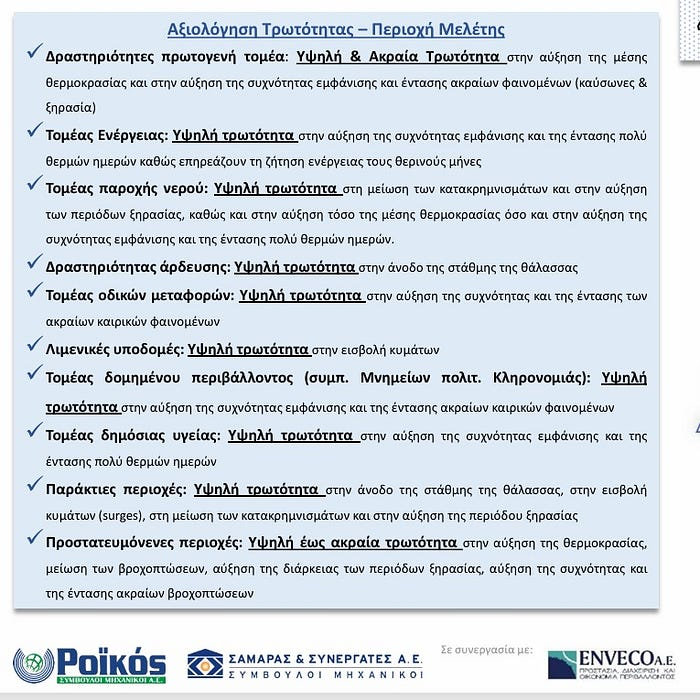 - Υψηλή και Ακραία τρωτότητα σε όλες τις ελεγχόμενες υποδομές, τομείς, δραστηριότητες κοκ (σελ. 33 της παρουσίασης)