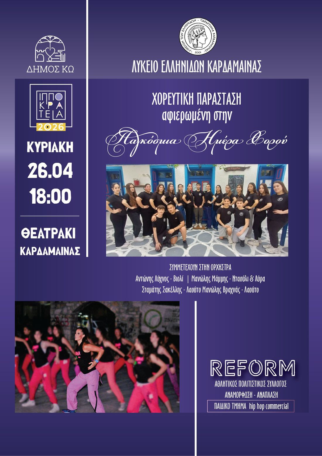 ΧΟΡΕΥΤΙΚΗ ΠΑΡΑΣΤΑΣΗ αφιερωμένη στην Παγκόσμια Ημέρα Χορού σε συνεργασία με το ΛΥΚΕΙΟ ΤΩΝ ΕΛΛΗΝΙΔΩΝ -παράρτημα ΚΑΡΔΑΜΑΙΝΑΣ