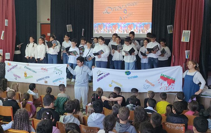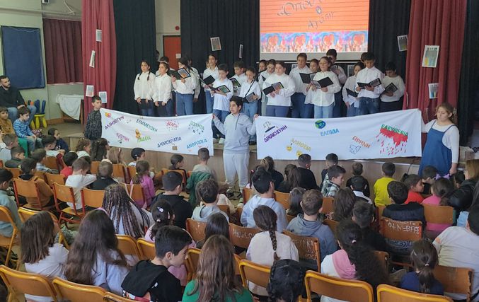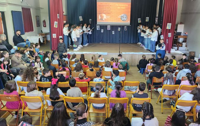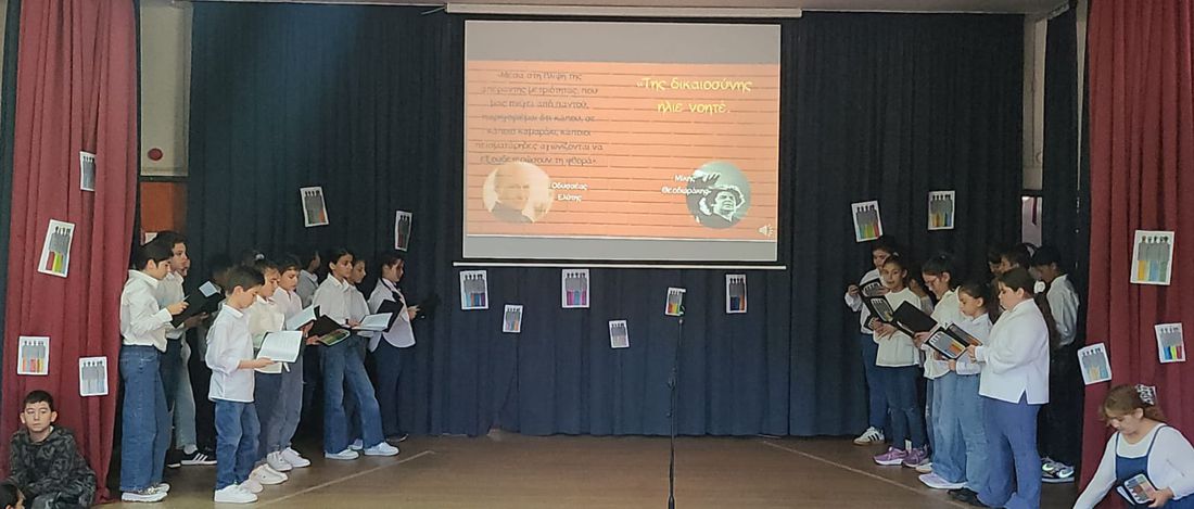 Ξεχωριστή ήταν και η χορωδία του σχολείου, η οποία απέδωσε τραγούδια-σύμβολα της αντίστασης, δημιουργώντας μια ατμόσφαιρα γεμάτη συναίσθημα.