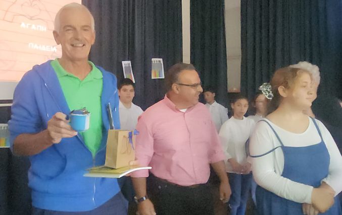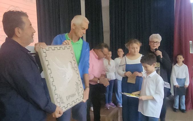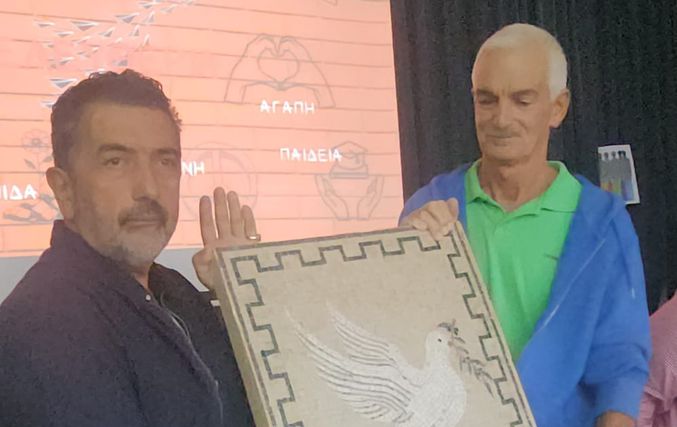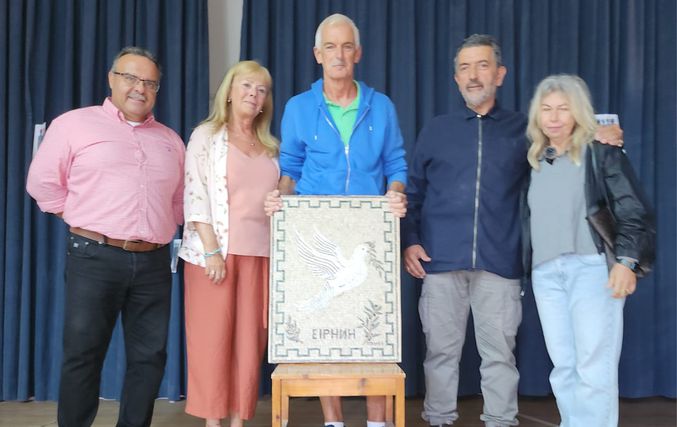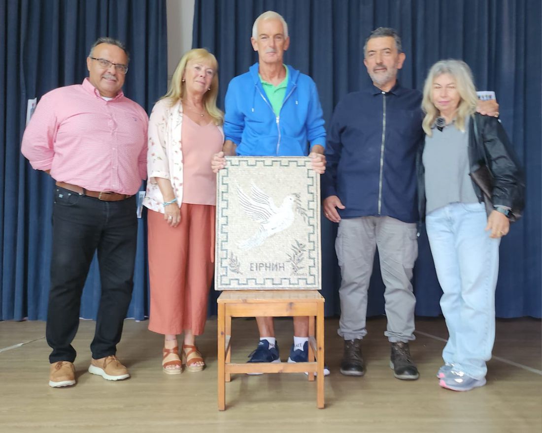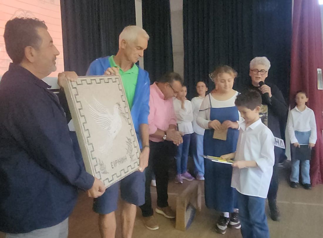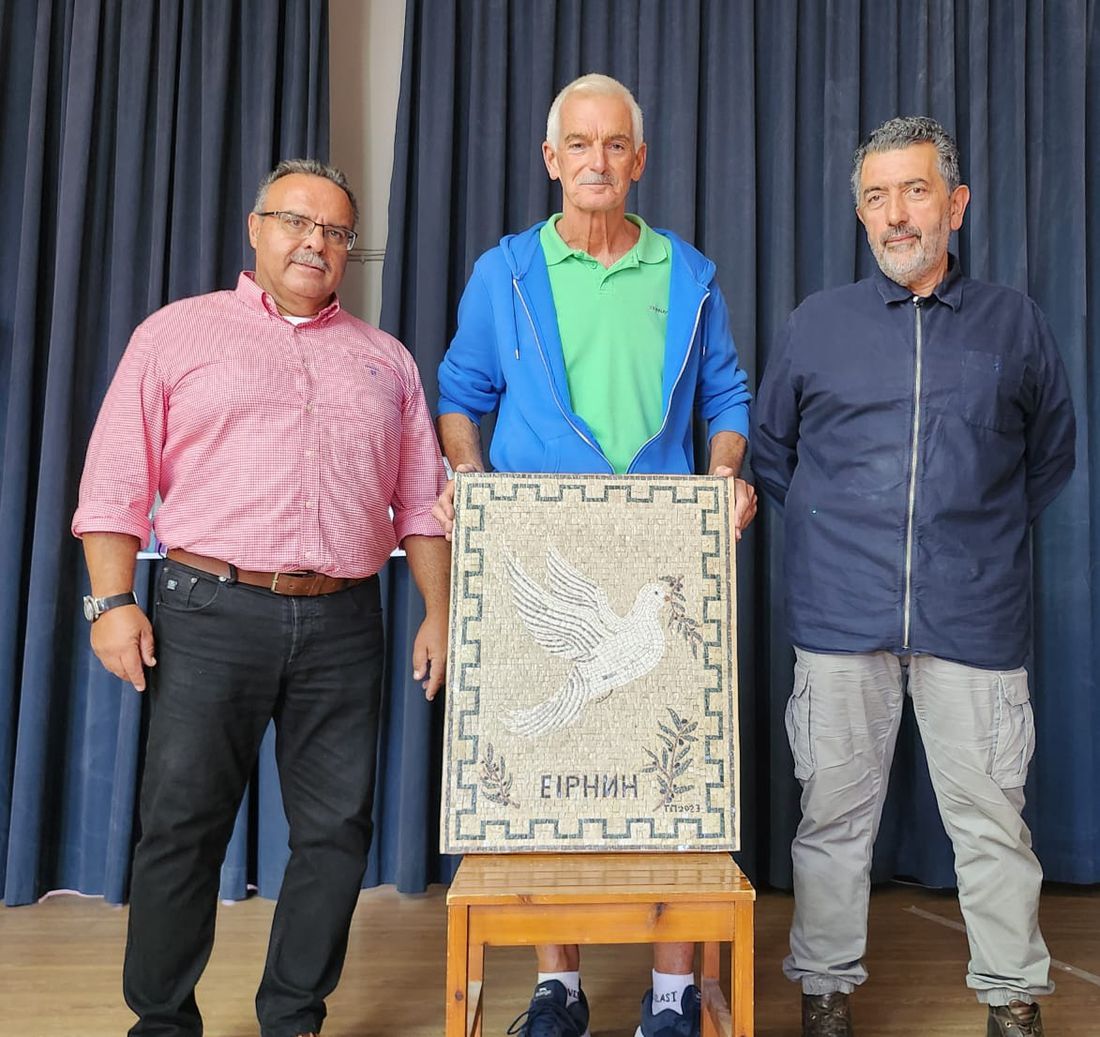 Στο πλαίσιο της εκδήλωσης, ο κ. Δαυίδ Χατζηδαυίδ από το Εργαστήρι ψηφιδωτών της Ιεράς Μητροπόλεως Κω - Νισύρου, χάρισε ένα ψηφιδωτό με θέμα την ειρήνη στο σχολείο, που το δημιούργησε ο Τρέβορ, ένας τουρίστας ο οποίος έρχεται 35 χρόνια στην Κω και τα τελευταία χρόνια παρακολουθεί μαθήματα από το εργαστήρι.