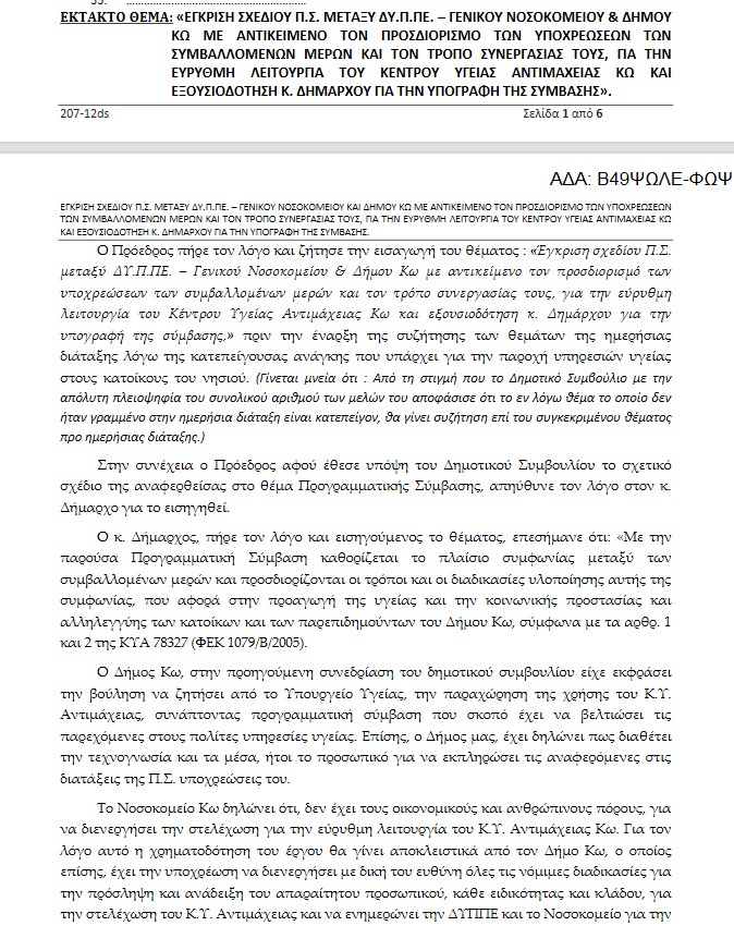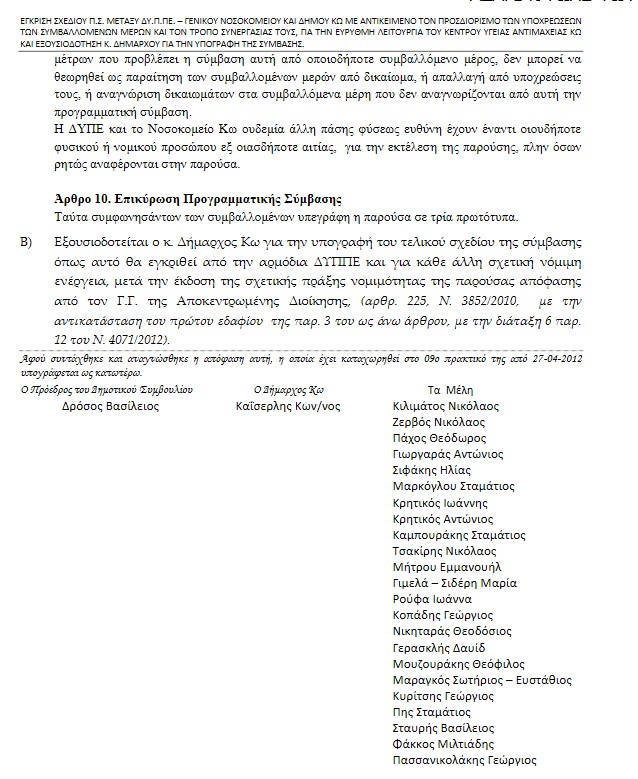 Σας στέλνω τις αποφάσεις της Εκτελεστικής Επιτροπής και του Δημοτικού Συμβουλίου, όπως επίσης και το σχέδιο του καταστατικού της Κοιν.Σ.Επ. «Κως Ασπίς Παροχής Υπηρεσιών Υγείας»