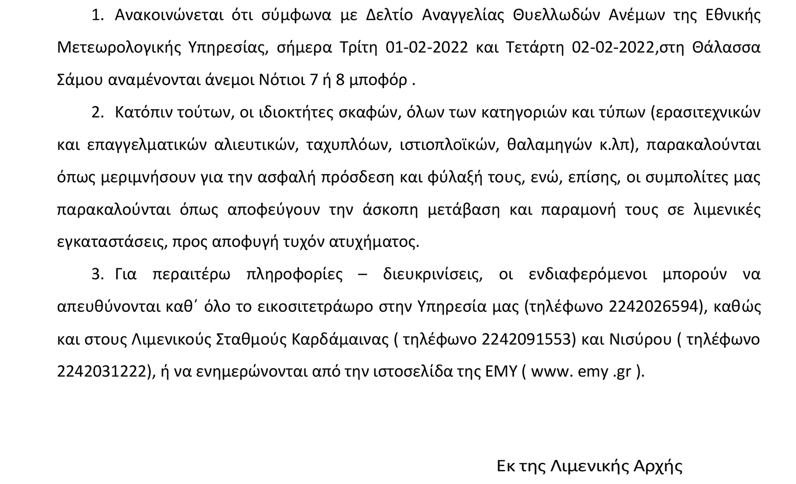 ΛΙΜΕΝΑΡΧΕΙΟ ΚΩ: ΕΚΤΑΚΤΟ ΔΕΛΤΙΟ ΕΠΙΔΕΙΝΩΣΗΣ ΤΟΥ ΚΑΙΡΟΥ