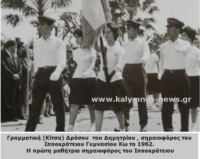 Επειδή η Κωνσταντίνα Πατμίου έκανε μεταγραφή σε Λύκειο στην Αθήνα, όπου ολοκλήρωσε την τελευταία Τάξη, σημαιοφόρος ήταν για το 1962 , η Γραμματική Δρόσου, που υπήρξε και η πρώτη γυναίκα σημαιοφόρος στην ιστορία του Ιπποκρατείου Γυμνασίου Λυκείου Κω.