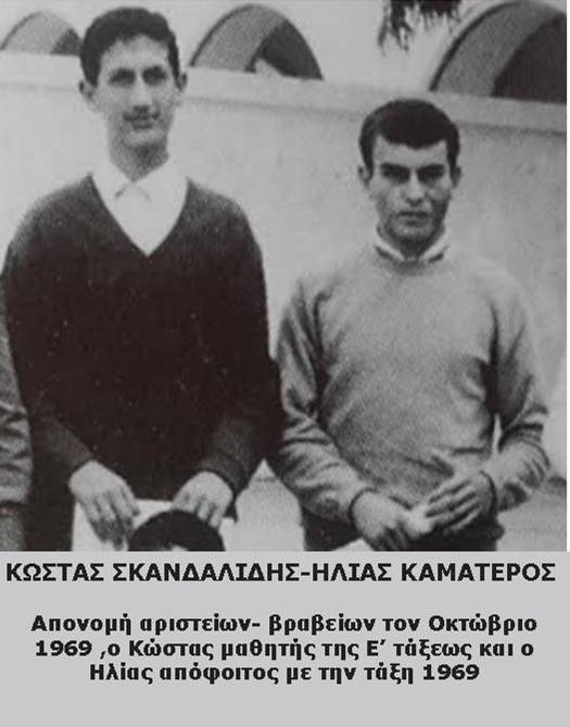 -Κώστας Σκανδαλίδης. Αριστούχος μαθητής και εν δυνάμει σημαιοφόρος. Το Δεκέμβριο 1969 και ενώ φοιτά στην Ε΄ Τάξη του Ιπποκρατείου Γυμνασίου, αναγκάζεται να φύγει, λόγω του θανάτου του πατέρα του Παπα-γιώργη, για τη Θεσσαλονίκη, όπου τελειώνει την Ε’ Τάξη και στη συνέχεια πηγαίνει Αθήνα όπου στο Α΄Γυμνάσιο Αθηνών περατώνει της Γυμνασιακές του σπουδές . Εκλέγεται βουλευτής για πρώτη φορά στα Δωδεκάνησα το 1989. Είναι εν ενεργεία βουλευτής της Α’ Αθηνών .