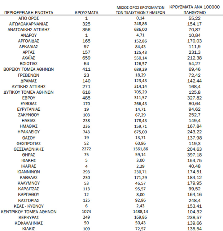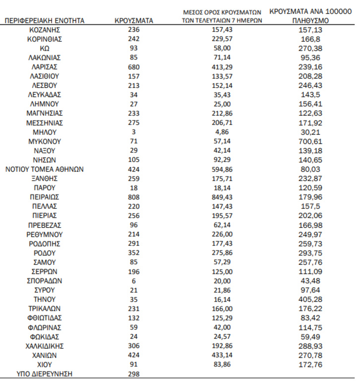 Με βάση τα επιβεβαιωμένα κρούσματα των τελευταίων 7 ημερών, 401 θεωρούνται σχετιζόμενα με ταξίδι από το εξωτερικό και 1.750 είναι σχετιζόμενα με ήδη γνωστό κρούσμα.