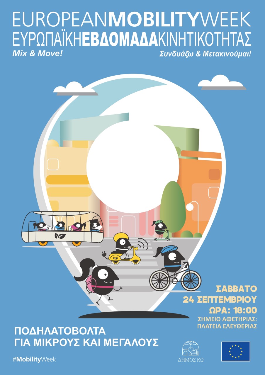 Με σύνθημα «Συνδυάζω –Μετακινούμαι» ο Δήμος Κω συμμετέχει στη φετινή Ευρωπαϊκή Εβδομάδα Κινητικότητας με στόχο την ενημέρωση, ευαισθητοποίηση και ενθάρρυνση των πολιτών να επιλέγουν εναλλακτικούς τρόπους μετακίνησης και να ανακαλύπτουν τις ομορφιές του νησιού.