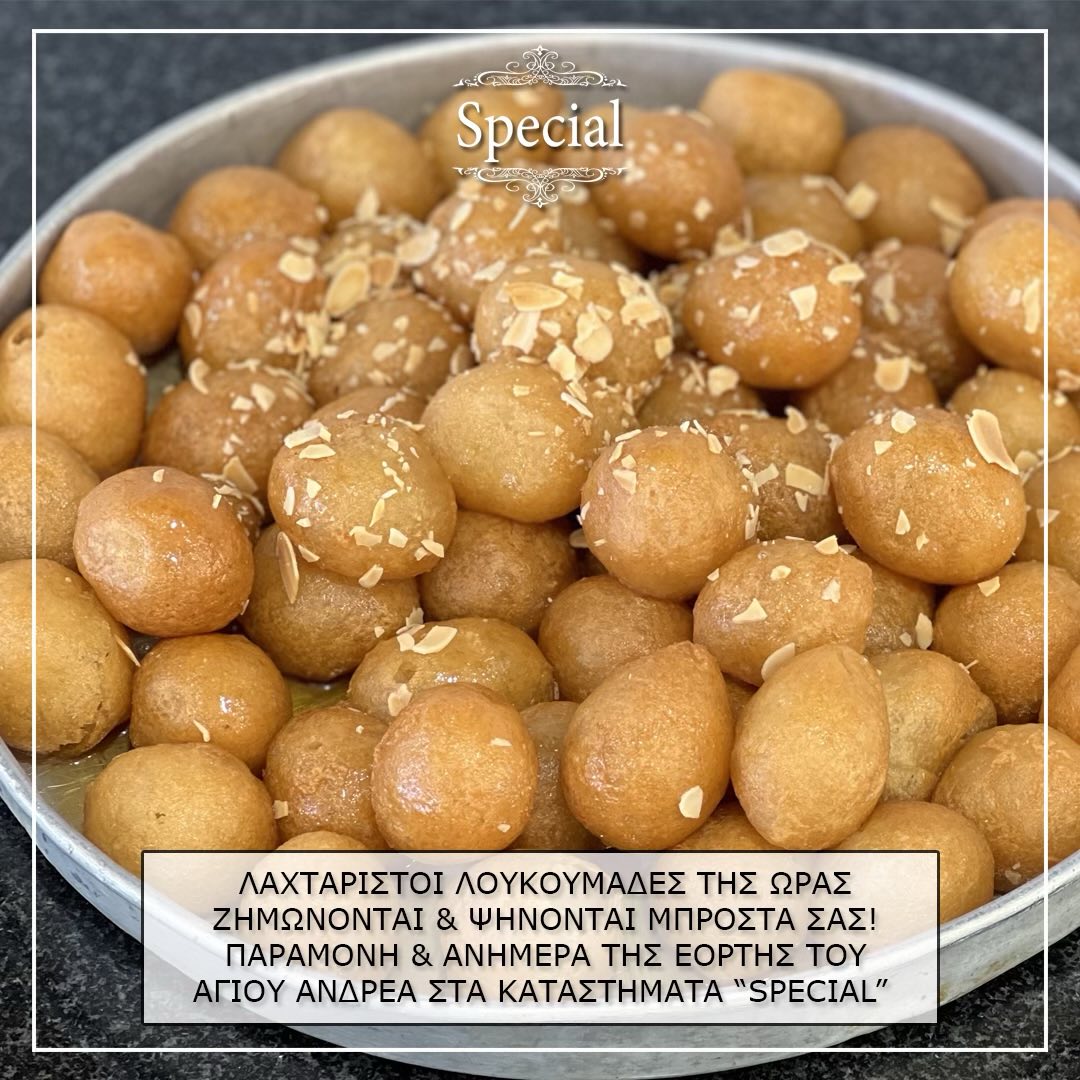 Στα καταστήματα "Special" σε M. Aλεξάνδρου, Ζηπάρι και Καρδάμαινα σας περιμένουμε από το πρωί της Τετάρτης μέχρι αργά το βράδυ της Πέμπτης, για να απολαύσετε τους παραδοσιακούς λουκουμάδες, για την γιορτή του Αγ. Ανδρέα.