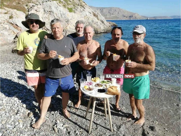 Βέβαια μετά το μπάνιο, για να ζεσταθούν αλλά και να το διασκεδάσουν, φροντίζουν να πιούν τα τσιπουράκια τους, συνοδευόμενα με τους απαραίτητους μεζέδες. Μάλιστα σήμερα, το μενού προέβλεπε και φασολάδα ψημένη στα ξύλα. Ο σεφ της παρέας ο Παναγιώτης Βούρος ετοίμασε μία νοστιμότατη φασολάδα, η οποία συνοδευόταν από ρέγκα ,σαρδέλες, τυρί, ελιές, κρεμμύδι και ψωμί.