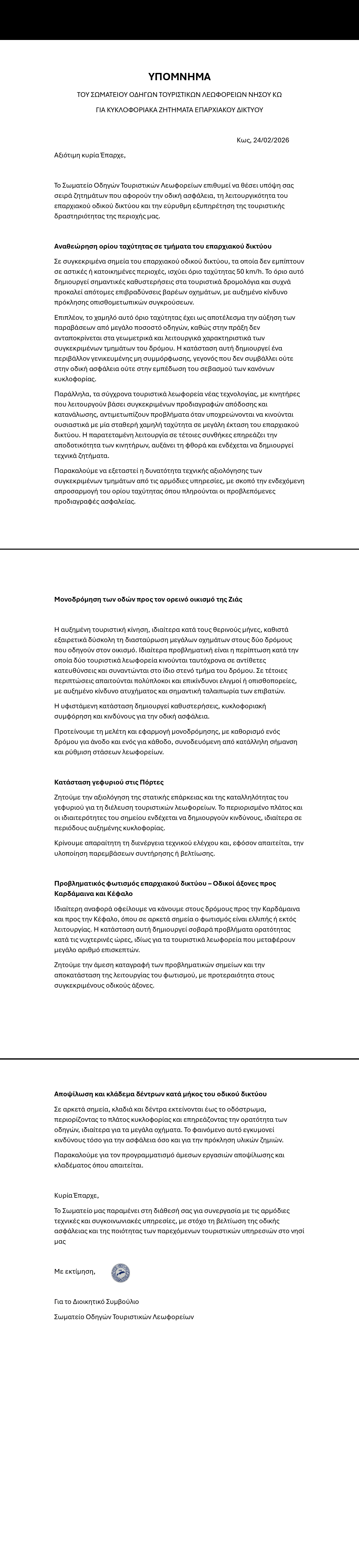 M. Kόνσολας: Παρέμβαση για την αποκατάσταση των ζημιών στο νησί της Κω και τη χορήγηση αποζημιώσεων