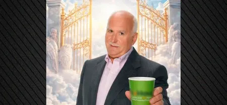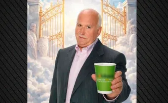 Αντιδράσεις με διαφήμιση μαγαζιού που δείχνει τον Γιώργο Παπαδάκη να πίνει τον καφέ του από τον Παράδεισο