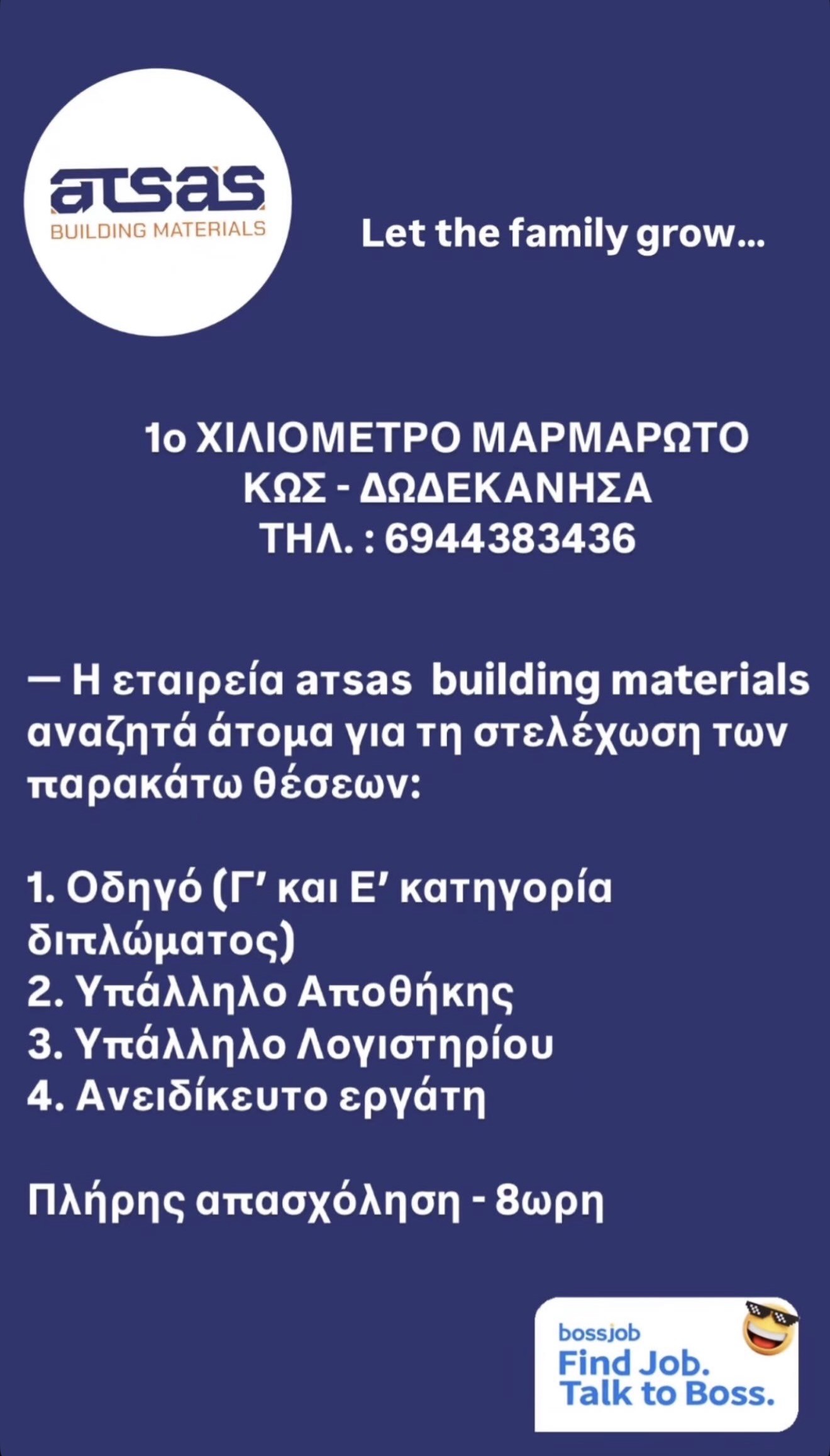 H εταιρεία "atsas building materials" αναζητά προσωπικό