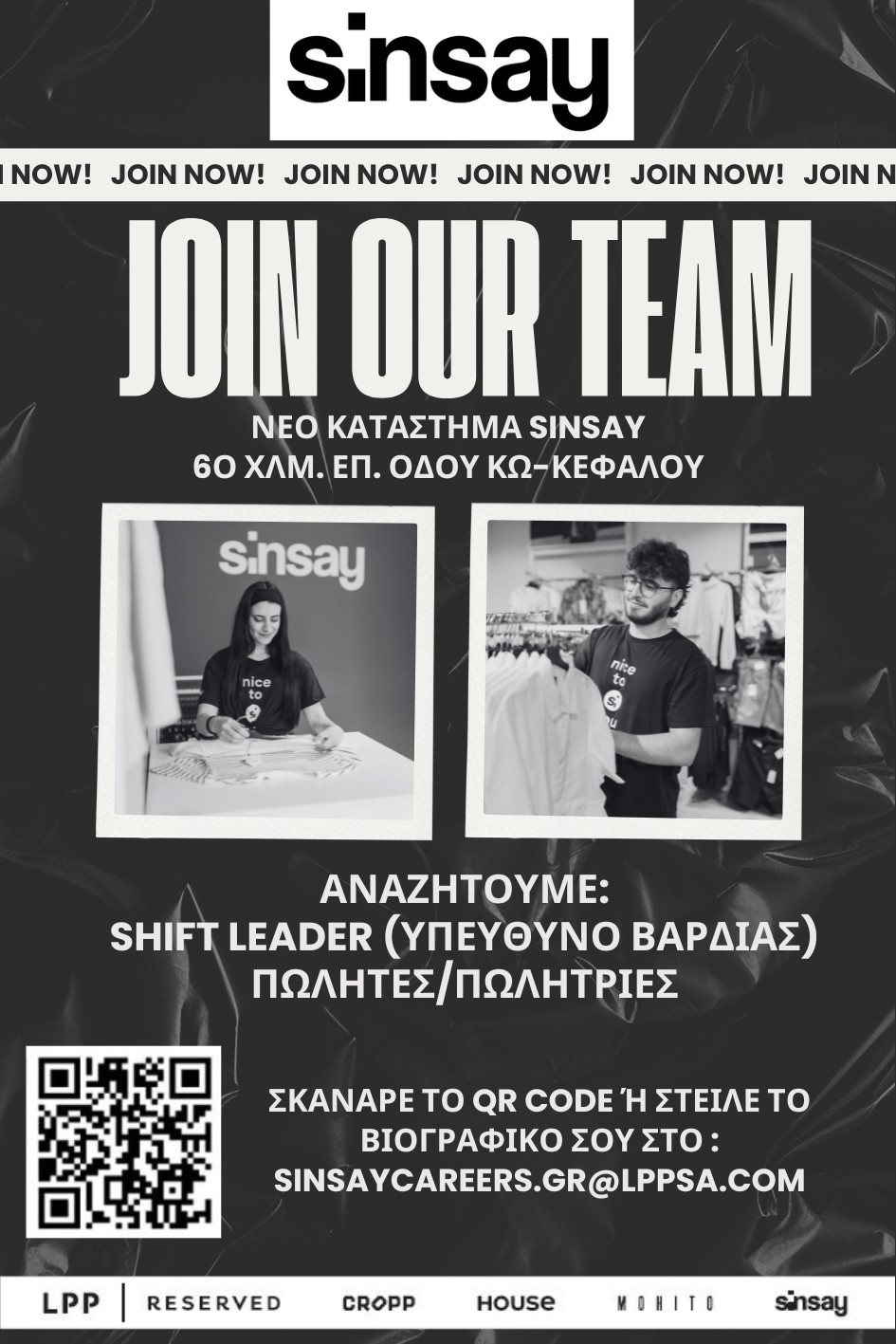 Sinsay: Αναζητούμε Shift Leader (υπεύθυνο βάρδιας) και πωλητές/τριες για το νέο μας κατάστημα στην Κω