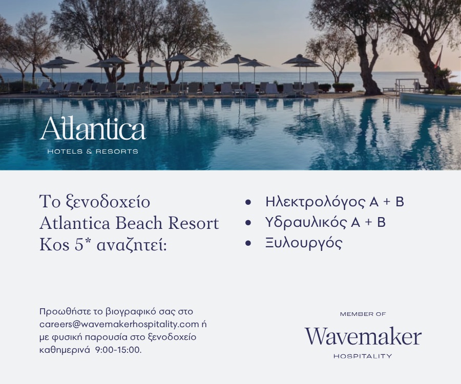 Το ξενοδοχείο Αtlantica Beach Resort Kos 5* αναζητά προσωπικό
