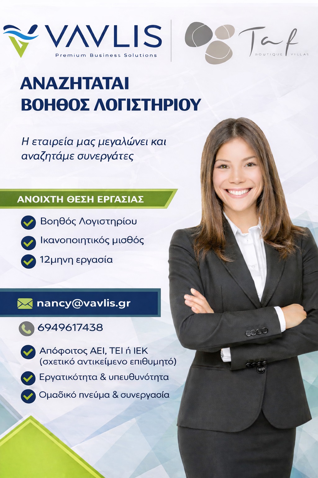 “Vavlis”: Ζητείται βοηθός λογιστηρίου