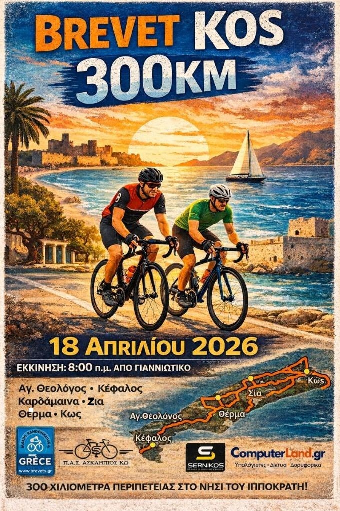 Το Σάββατο 18 Απριλίου, στις 08:00 π.μ., ξεκινά από το Γιαννιώτικο (Ιπποκράτους) η μεγαλύτερη ποδηλατική δοκιμασία στα Δωδεκάνησα!